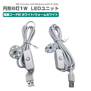 LED ユニット モジュール 3.0-5V 用 6灯1W USB 電源コード付 型 照明 円形 光る台座 用 汎用 DIY USB LED基盤 LEDアレイ