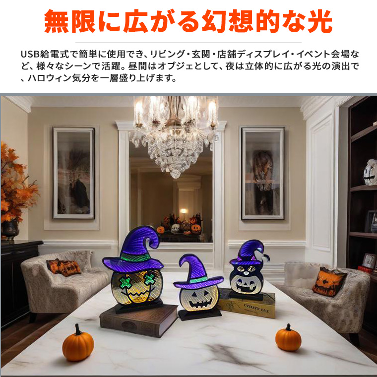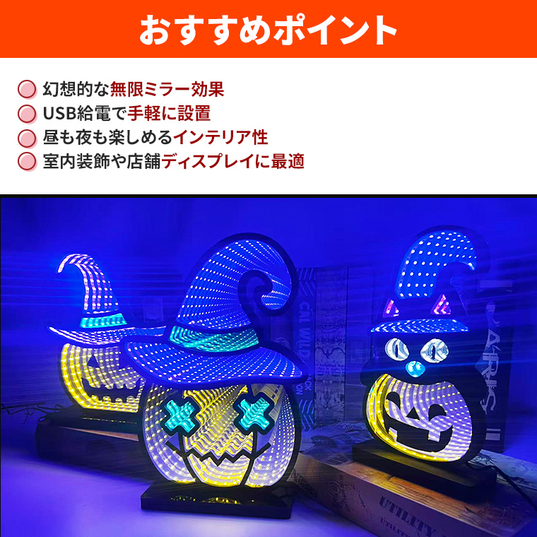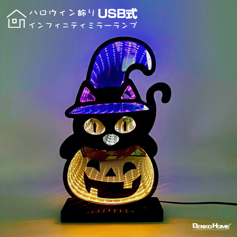 ハロウィン LED 無限 ミラーライト (インフィニティミラーランプ) トンネルランプ ハロウィン ライト ハロウィン飾り 電飾 USB式 星目かぼちゃ インテリア サイン 看板 オブジェ 黒猫 カボチャ パンプキン 魔女