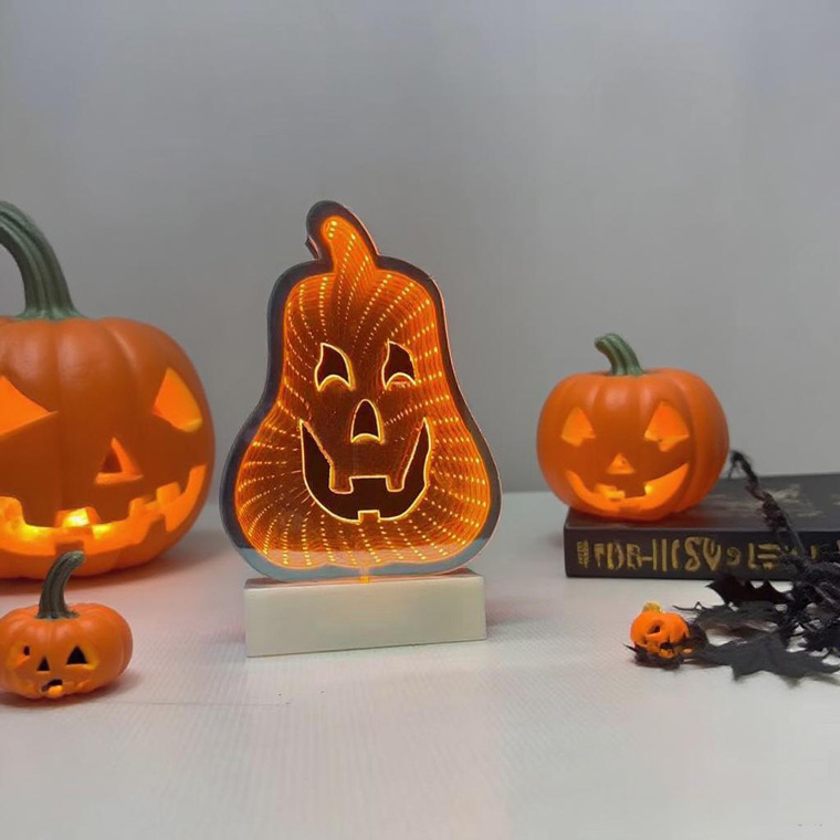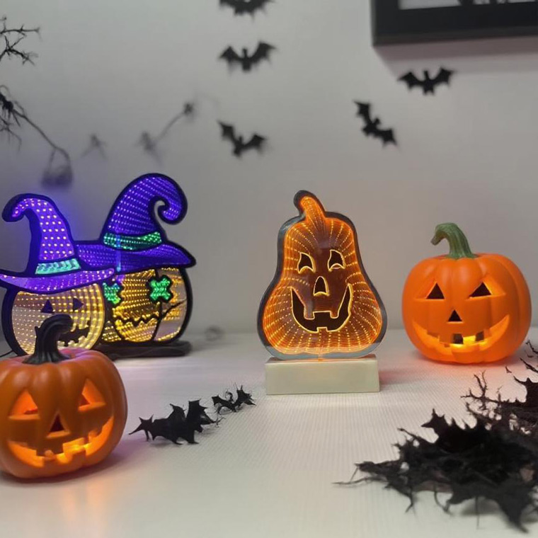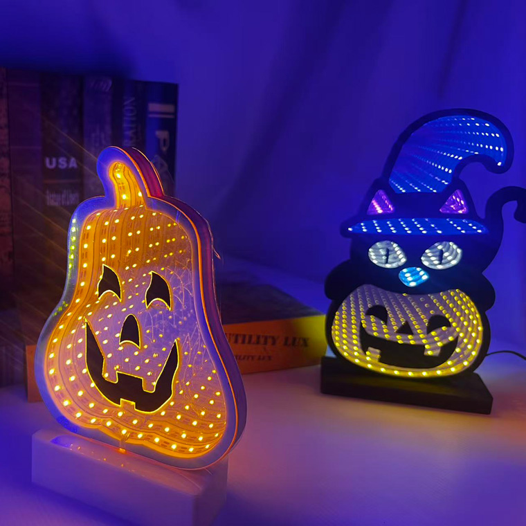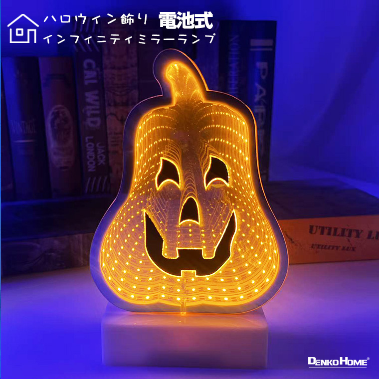 ハロウィン LED 無限 ミラーライト (インフィニティミラーランプ) カボチャ トンネルランプ 電池式 ハロウィン ライト ハロウィン飾り 電飾 インテリア サイン 看板 オブジェ 黒猫 カボチャ パンプキン 魔女