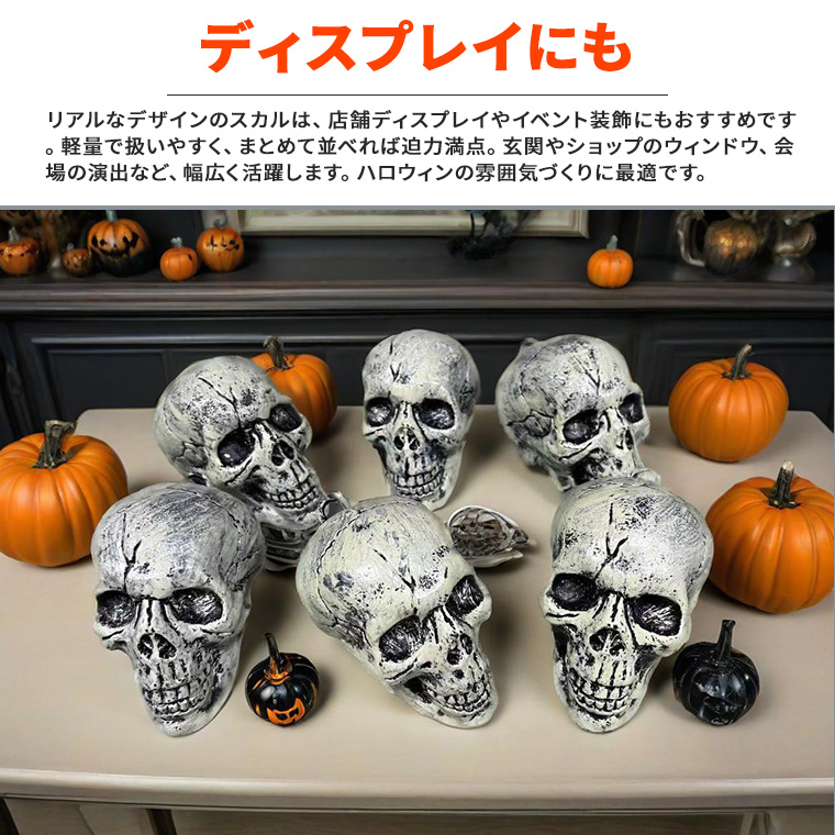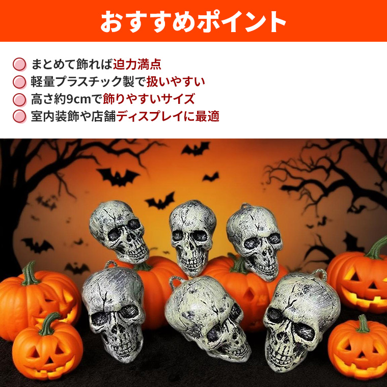 ハロウィン スカル 6体セット ハロウィン 飾り 骸骨 ドクロ 装飾 インテリア ディスプレイ 置き型 吊り下げ ハロウィンオブジェ お化け スケルトン 髑髏 デコレーション 置物 モチーフ 玄関