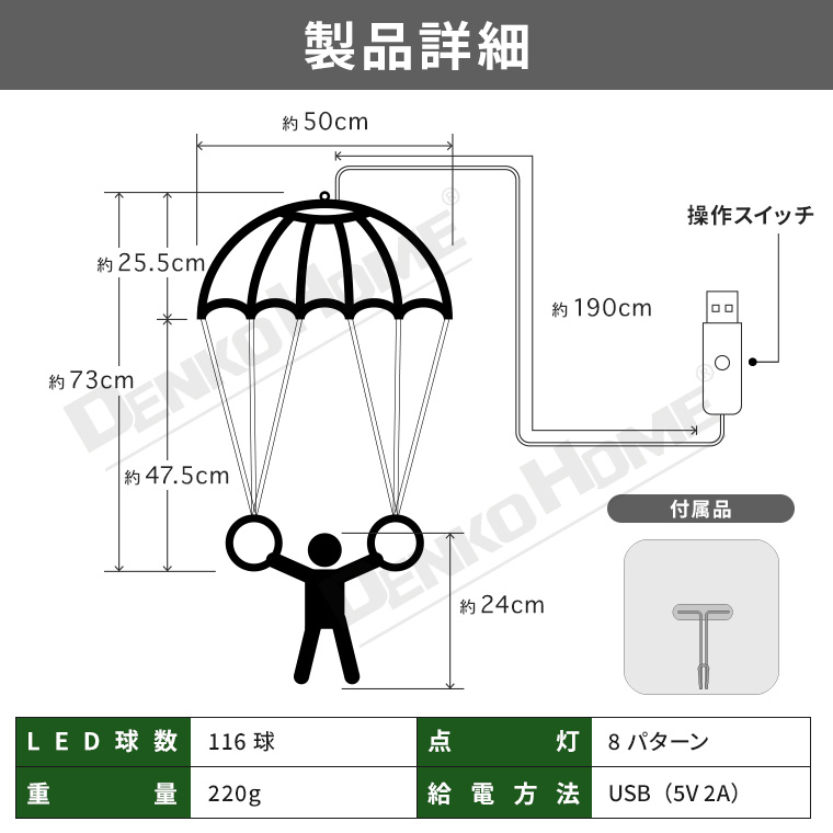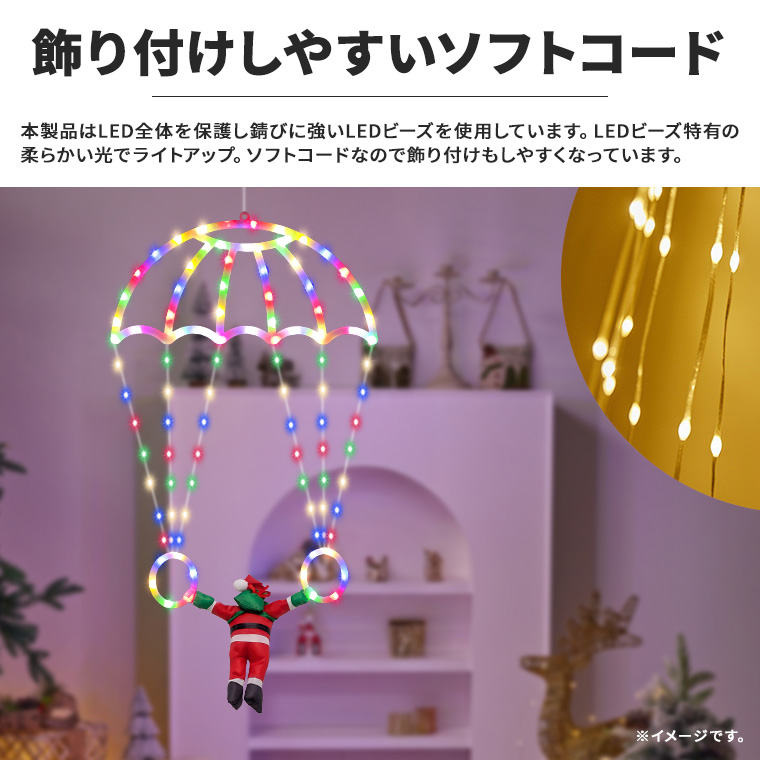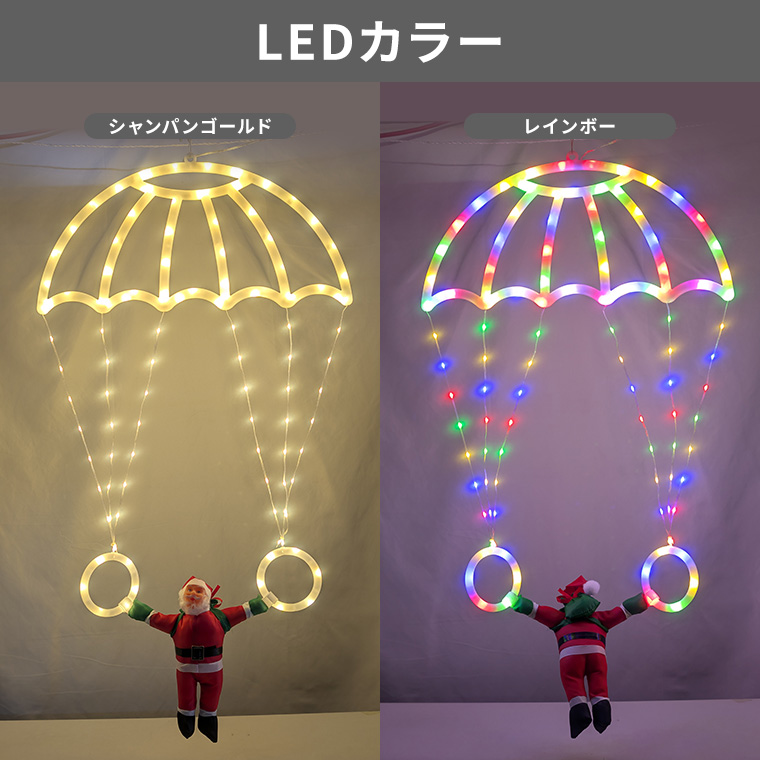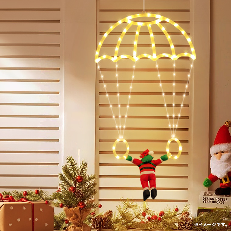 イルミネーション パラシュート サンタ クリスマス飾り USB電源 室内用 8パターン点灯 かわいい おしゃれ led モチーフ 傘 サンタクロース 電飾 クリスマスライト ウォールライト 飾り付け 吊り下げ ツリー オーナメント 電光ホーム