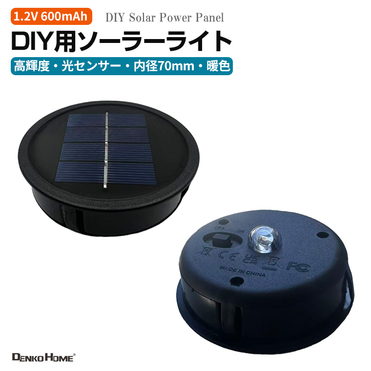DIY用 ソーラーライト 高輝度 光センサー付き 1.2V 600mAh 暖色LED 内径70mm 外径80mm 屋外防水型 自動点灯タイプ 汎用 自作