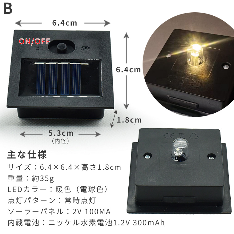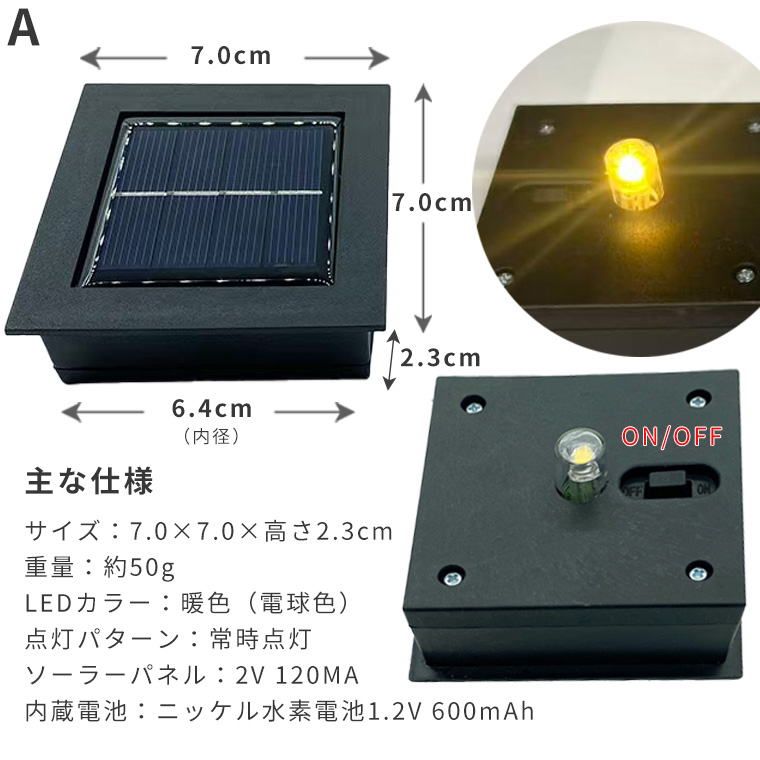 DIY用 ソーラーライト 埋め込み型 正方形 2種類 光センサー付 電球色 常時点灯 防水 庭 ガーデンライト 充電式 LED対応 モジュール パネルユニット