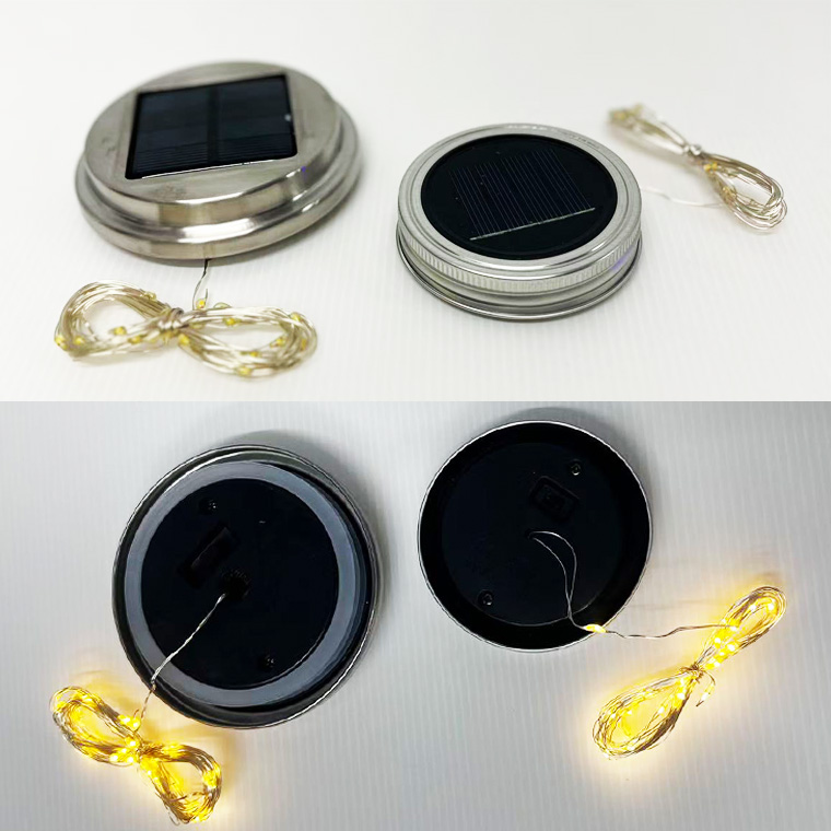 1.2V 600mAhの充電池を内蔵し、スイッチでON/OFF切り替え可能。蓋型タイプで、瓶・ランタン・プランターなどお好みの容器にセットするだけで簡単におしゃれ照明が作れます。