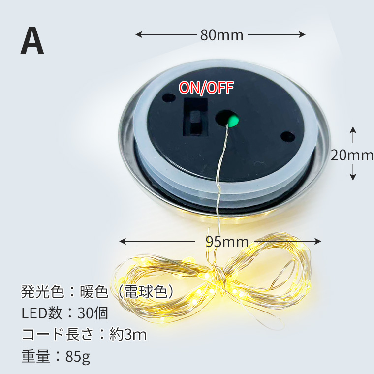 LED数/コード長さ | A:30個/3m B:20個/2m |