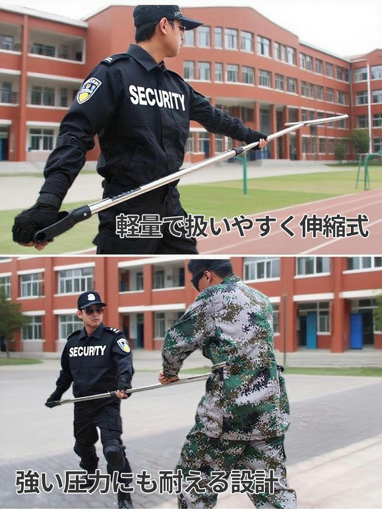 防犯用 さすまた 伸縮式 ステンレス製 高強度 刺股 防犯ポール 護身 軽量 サスマタ 頑丈 耐圧500kg 全長205cm 指叉 刺又 突棒 侵入者 対策 害獣 駆除 伸縮タイプ 防犯 グッズ