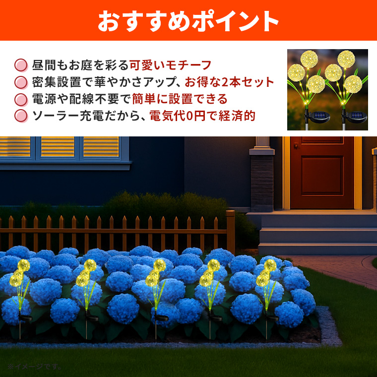 ソーラー イルミネーション たんぽぽ フラワー 2本セット 埋め込み 電球色 屋外用 防水 led ガーデンライト 充電式 電飾 かわいい おしゃれ 自動点灯 クリスマス アプローチ 庭 芝生 花壇 電光ホーム