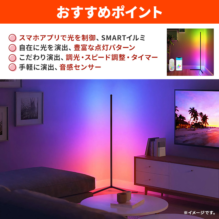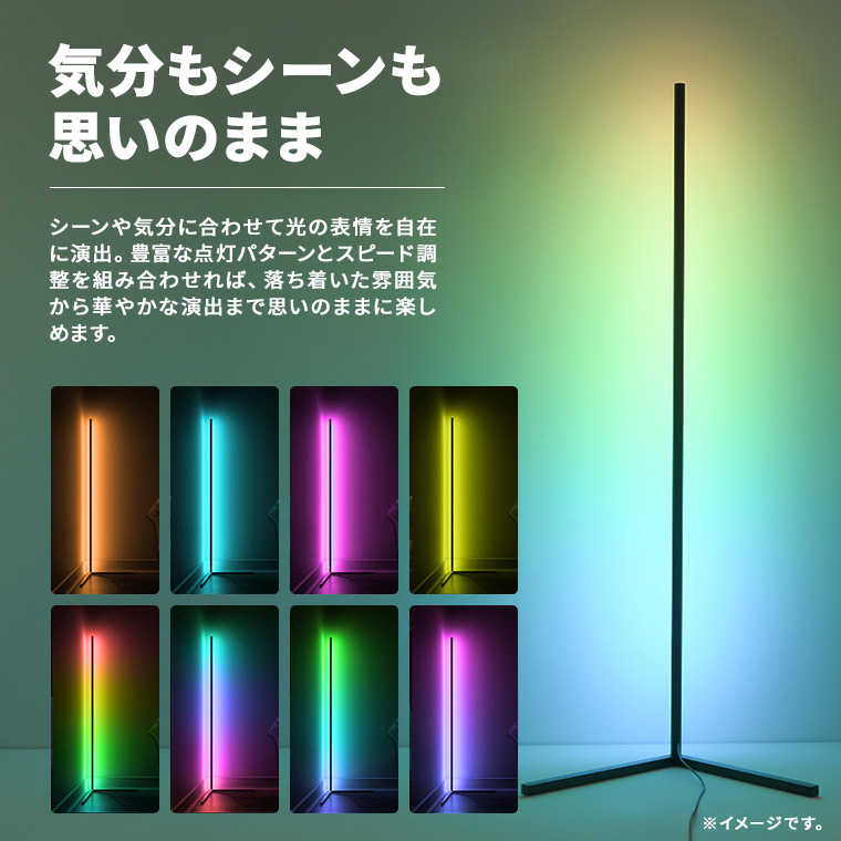 ゲーミングライト コーナー フロアライト LED 雰囲気ライト アプリ操作 RGB USB電源 室内用 調光 調色 タイマー 音楽 同期 おしゃれ ゲーム リズム サウンドセンサー カラフル イルミネーション 間接照明 店舗 演出 雑貨 電光ホーム