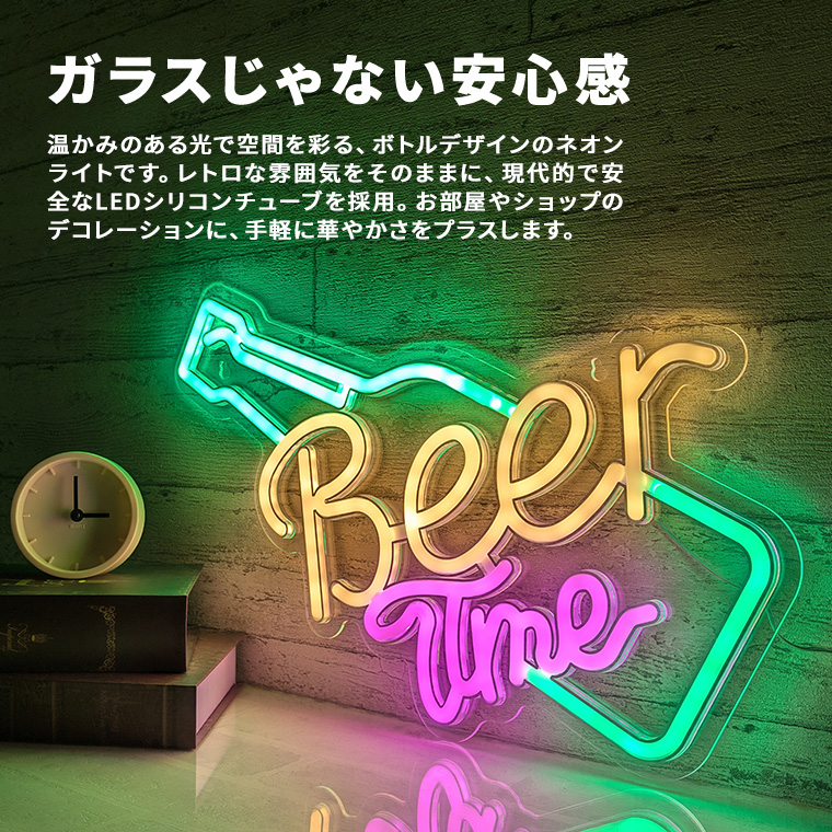 LED ネオンサイン ビア ボトル USB電源 室内用 かわいい おしゃれ レトロ ネオンライト ネオン管 チューブ インテリアライト アメリカ雑貨 間接照明 飾り付け 壁掛け 電光ホーム