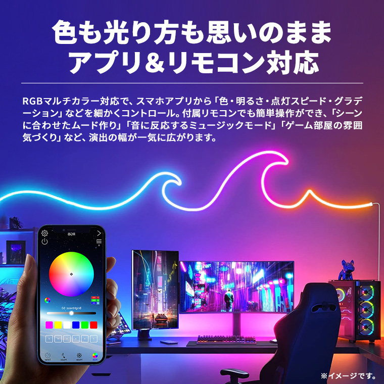 LED ネオンライト チューブ ロープ 5m アプリ操作 RGB USB電源 防水 調光 調色 タイマー 音楽 同期 おしゃれ ゲーミング リズム 流れる 蛍光 イルミネーション 電飾 DIY 間接照明 店舗 演出 電光ホーム