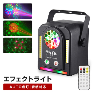 LED エフェクトライト 複合ライティング 音感対応 自動演出 リモコン付き スピード調整 レーザー 赤 緑 コンセント式 室内用 パーティー イベント 照明 間接照明 舞台照明 店内照明 電光ホーム