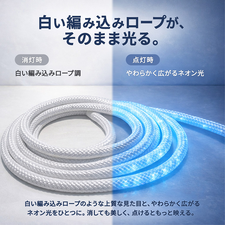 | 品名 | 白編み込みロープライト 5m APP(neon-rope) |