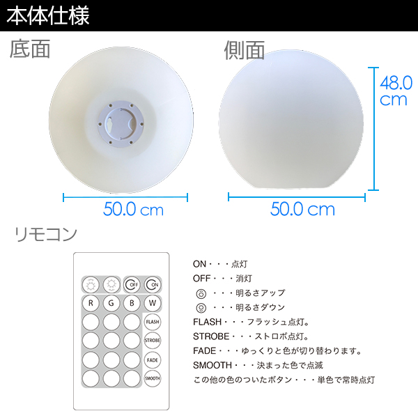 インテリアライト ボールの形 直径50cm リモコン付き 屋外 マルチカラー点灯