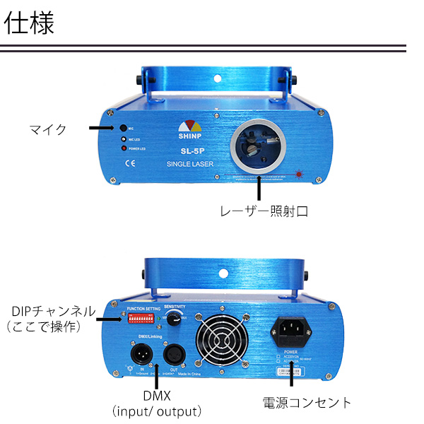 | 搭載モード | オートモード、サウンドモード、DMX、Master / Slave |