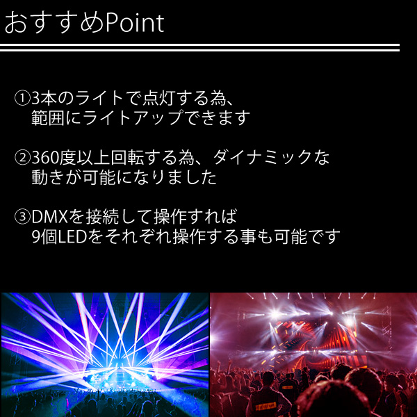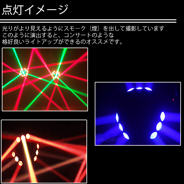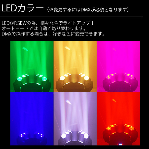 | 搭載モード | オートモード、サウンドモード、DMX、Master / Slave |
