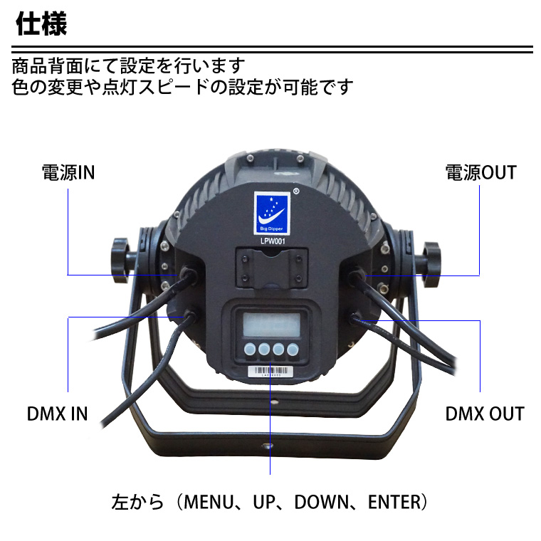| 商品内容 | パーライト、DMXケーブル1本、英語説明書、日本語簡易操作説明書 |