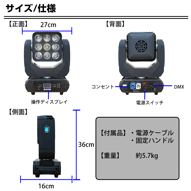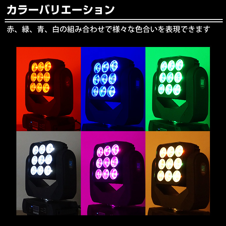 舞台照明 LM90 ムーヴィングヘッド パーライト スポットライト LED 9×15W RGBW 4in1 コンセント式 室内用 調光 舞台 効果 演出 ライトアップ 間接照明 ライブ コンサート クラブ イベント 店舗 業務