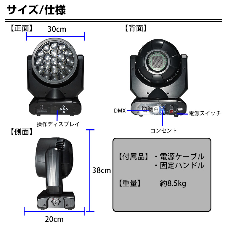 | 機能 | Auto,Sound,DMX,Master-Slave |