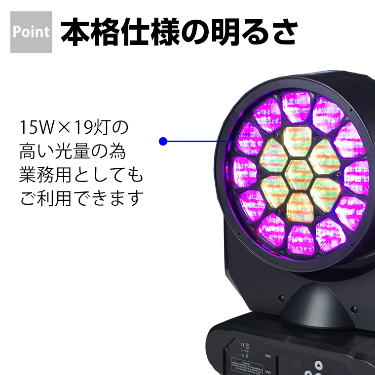 舞台照明 LM280 ムーヴィングヘッド パーライト スポットライト LED 15W×19 RGBW 4in1 コンセント式 室内用 調光 舞台 効果 演出 ライトアップ 間接照明 ライブ コンサート クラブ イベント 店舗 業務