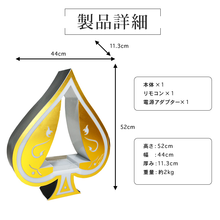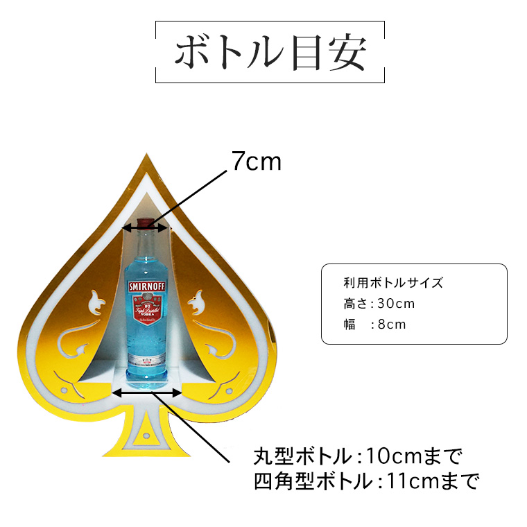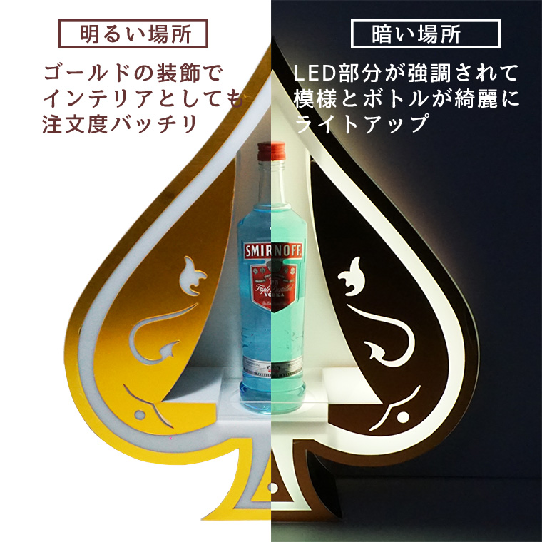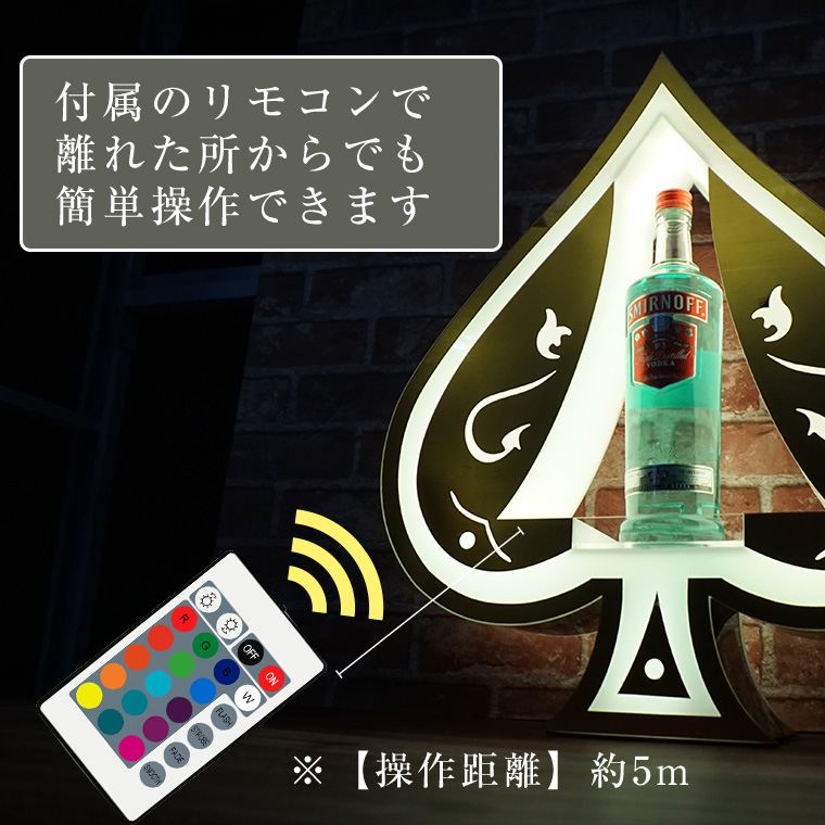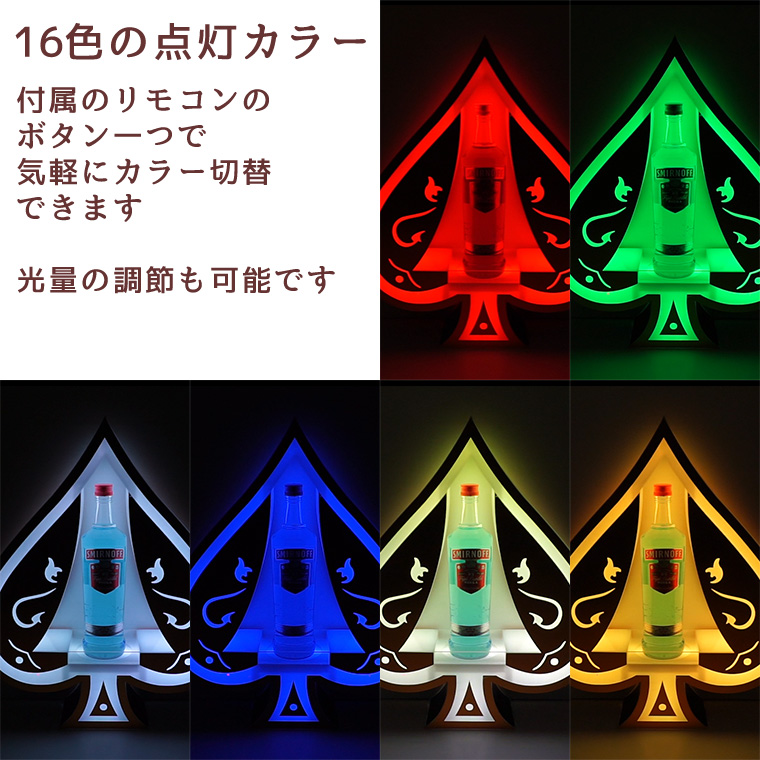 ボトルディスプレイ スペード 幅44×奥行11.3cm×高さ52cm 16色 充電式 リモコン付属