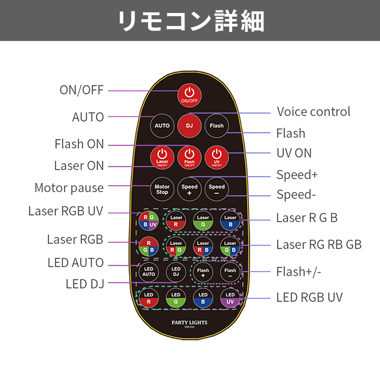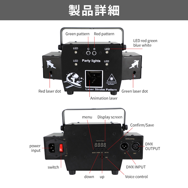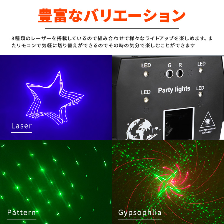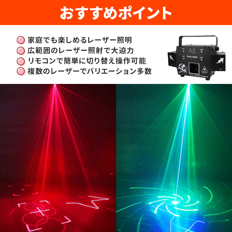 レーザーライト LEDライト レッド/ブルー/グリーン コンセント式 リモコン付属 屋内用 家庭用 間接照明 舞台照明 演出 赤 青 緑 模様 クリスマス ハロウイン イベント ライブ スナック クラブ キャバクラ ホストクラブ ライブ カラオケ ステージライト スポットライト