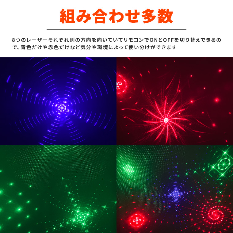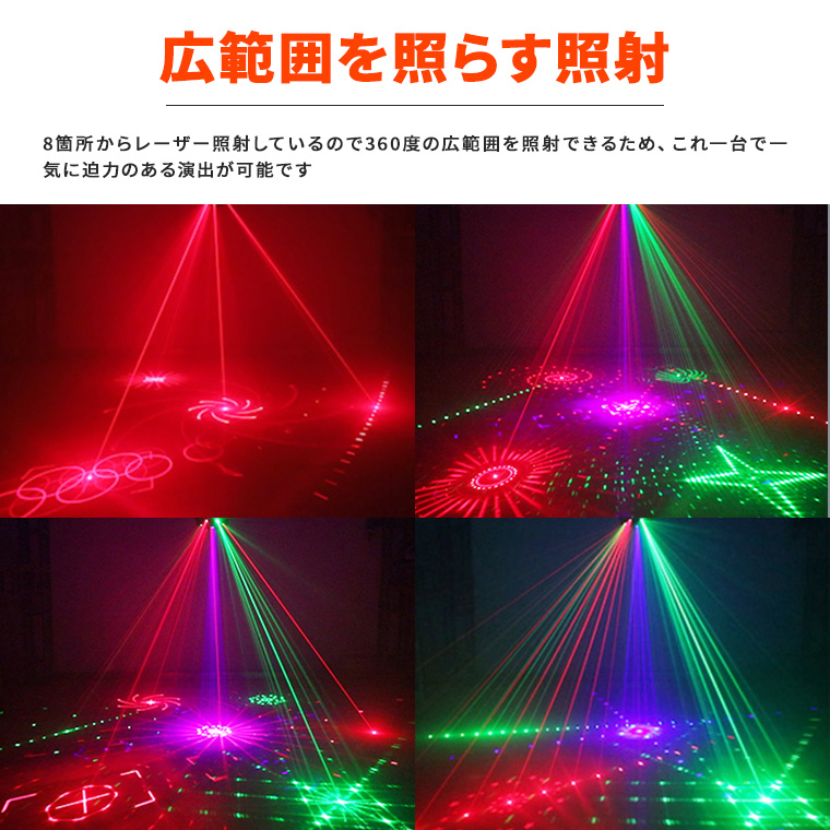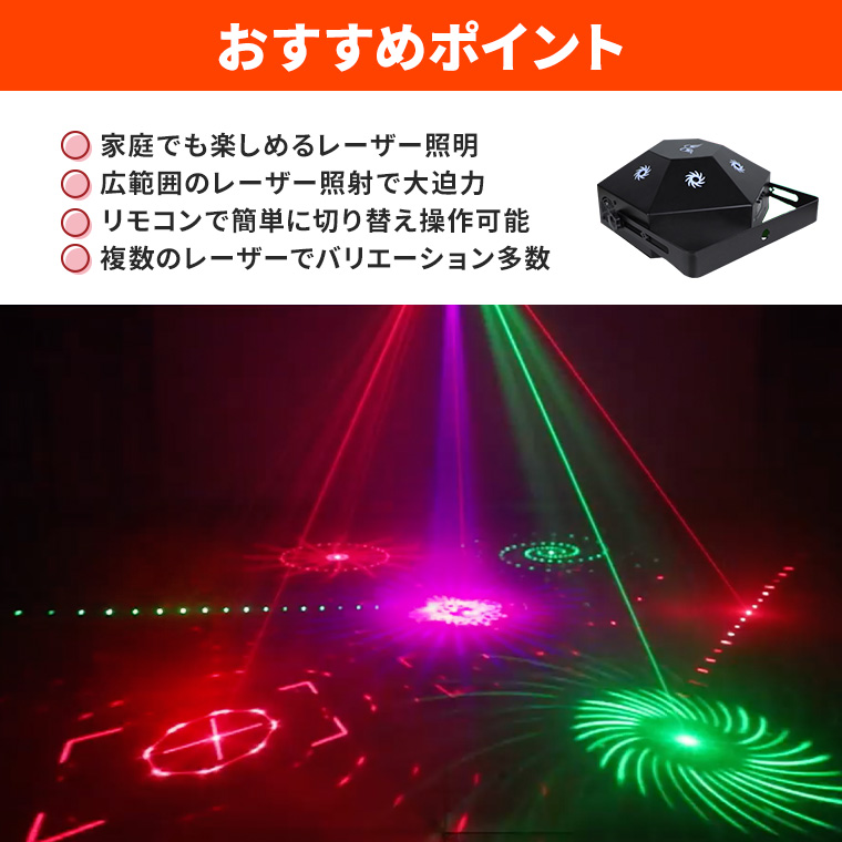 レーザーライト LEDライト レッド/ブルー/グリーン コンセント式 リモコン付属 屋内用 家庭用 広範囲 間接照明 舞台照明 演出 赤 青 緑 模様 クリスマス ハロウイン イベント ライブ スナック クラブ キャバクラ ホストクラブ ライブ カラオケ ステージライト スポットライト