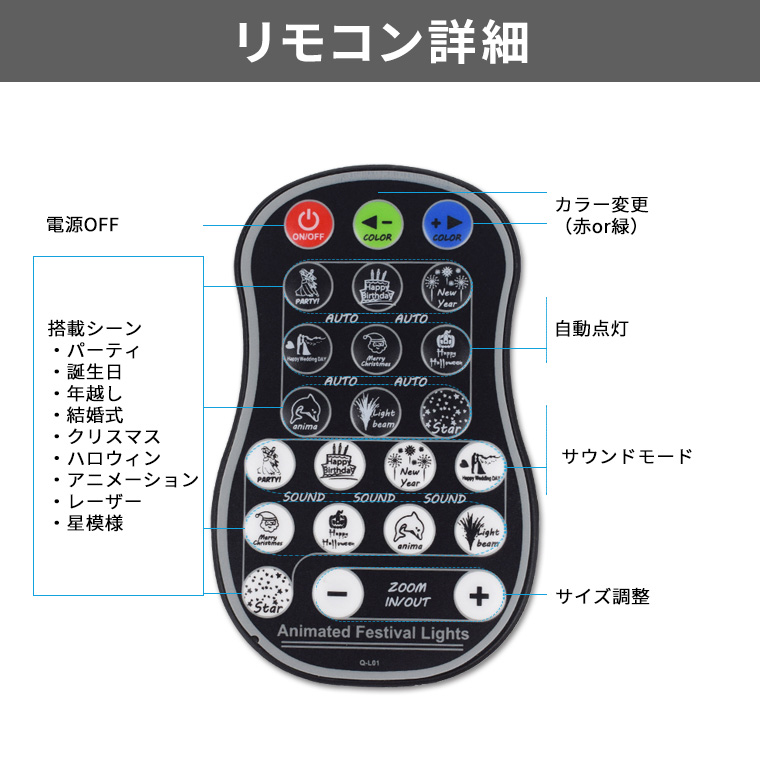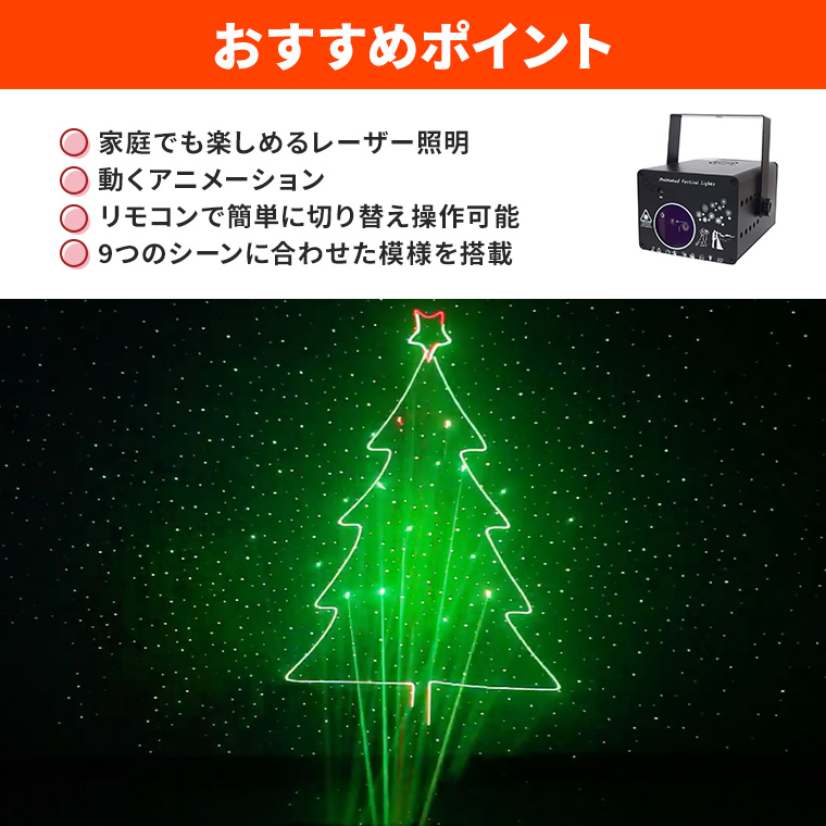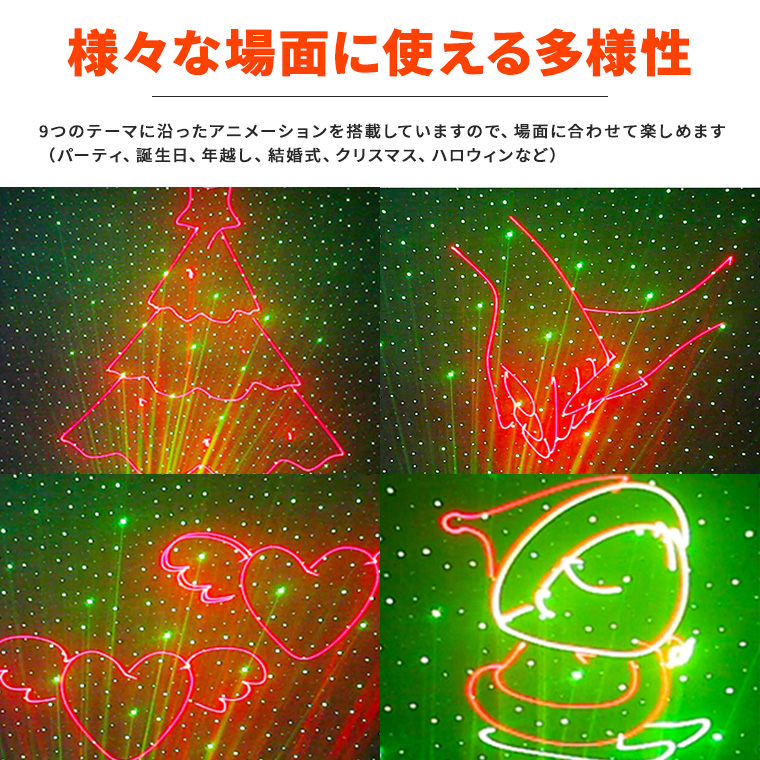 レーザーライト アニメーション コンセント式 リモコン付属 屋内用 家庭用 広範囲 間接照明 舞台照明 演出 動く クリスマス ハロウイン イベント 結婚式 年越し 年末 アニメ ステージライト スポットライト