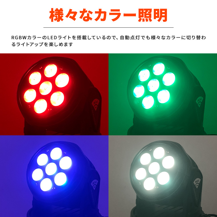 ムービングヘッド ライト ウォッシュライト ビーム 7灯 RGBW コンセント式 屋内用 ステージライト 舞台照明 演出 店内照明 広範囲 クリスマス ハロウイン イベント 結婚式 パーティー ホストクラブ キャバクラ ガールズバー スポットライト ミラーボール