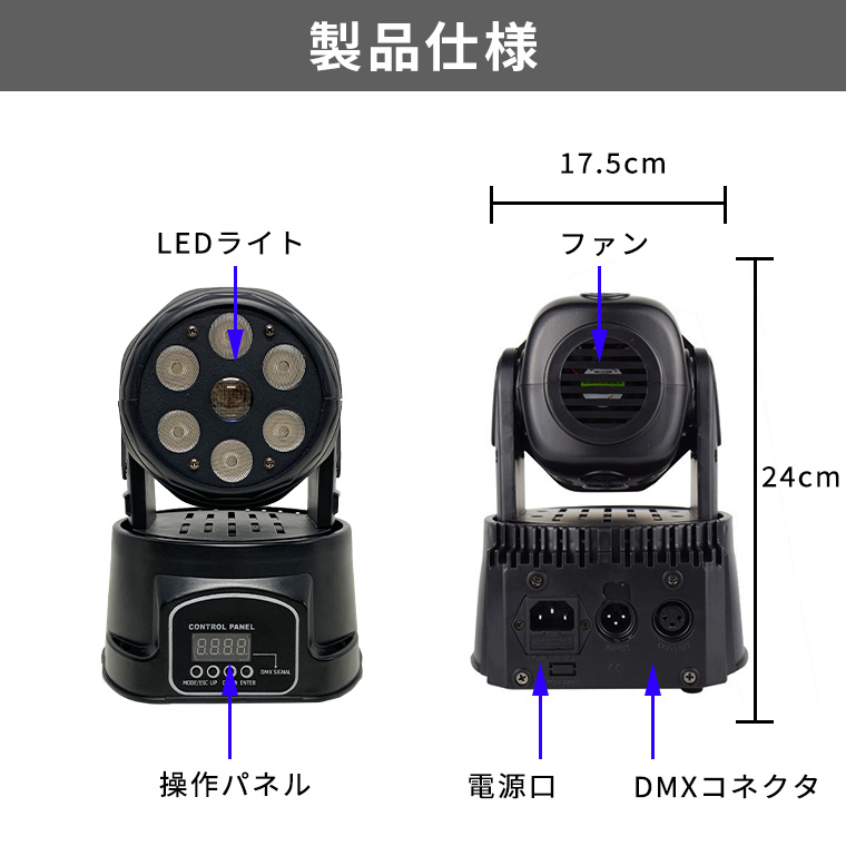 | 機能 | 自動点灯、サウンドモード、DMX対応 |