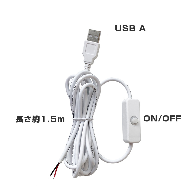 スイッチ付USB電源コード 電源 スイッチ コントローラー 電源ケーブル 照明 長さ1.5m 3-12V用 電源接続 光る台座 汎用 DIY USB LEDモジュール用