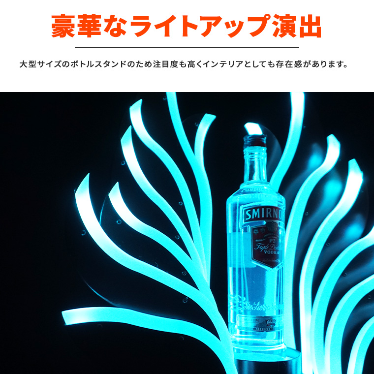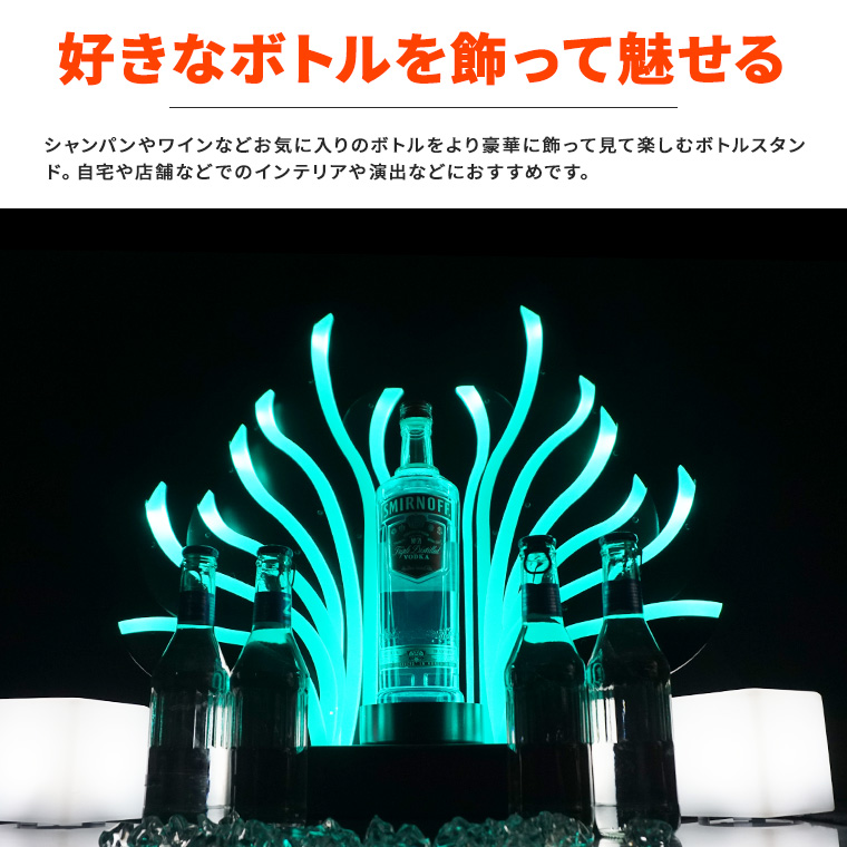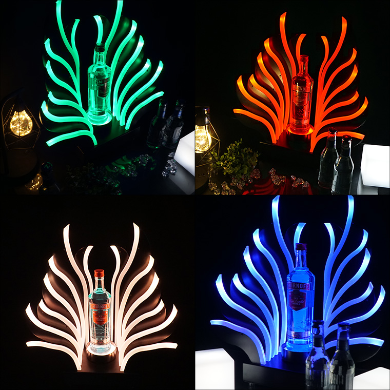 ボトルスタンド LED 孔雀型 マルチカラー 充電式 室内用 照明 RGB パーティ イベント バーアイテム お酒 グッズ カラオケ シャンパン 店舗 お洒落 クラブ キャバクラ ガールズバー 結婚式 二次会 BAR ホストクラブ カラオケ 誕生日 ボトルディスプレイディスプレイスタンド