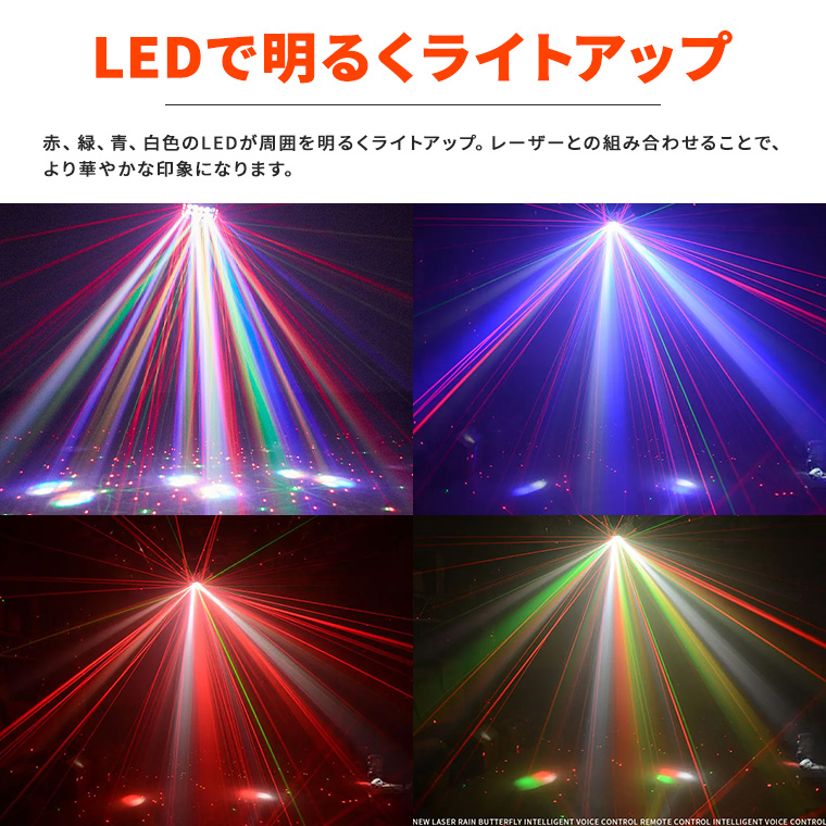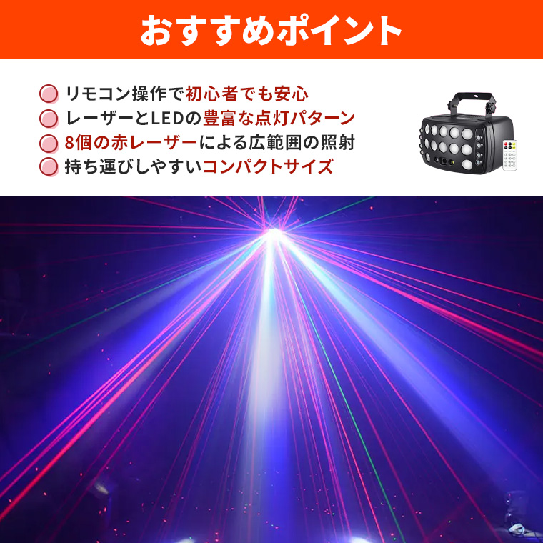 エフェクトライト LED照明 RGBW 赤 青 緑 白 コンセント式 リモコン付属 屋内用 レーザー搭載 間接照明 舞台照明 演出 店内照明 広範囲 クリスマス ハロウイン イベント 結婚式 パーティー ホストクラブ キャバクラ ガールズバー ステージライト スポットライト ミラーボール