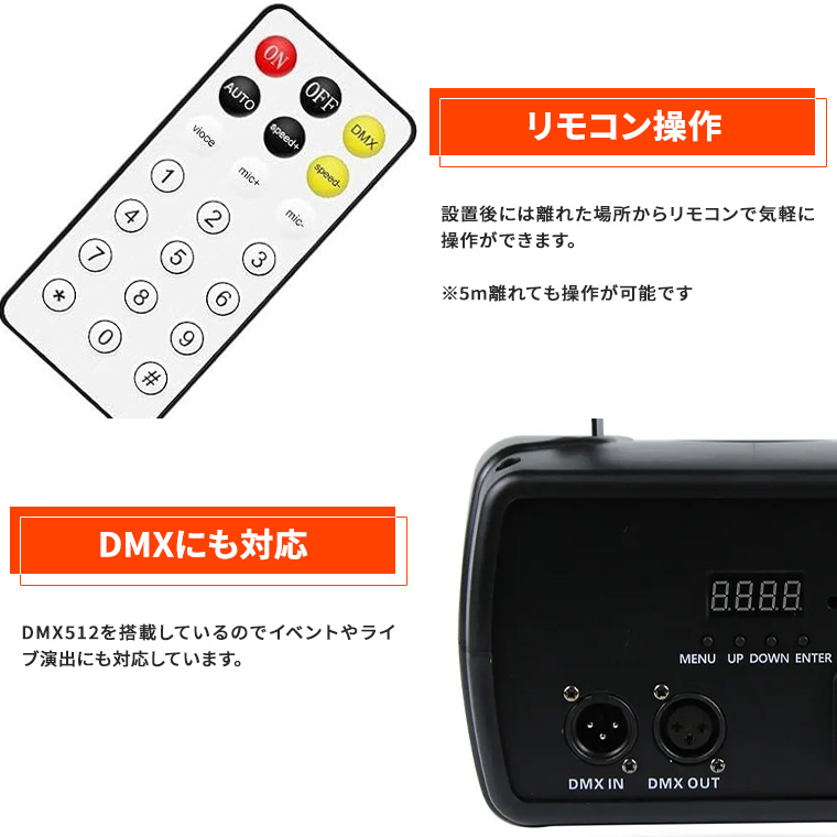 - DMXにも対応。DMXを搭載しているのでライブ演出も対応しています。