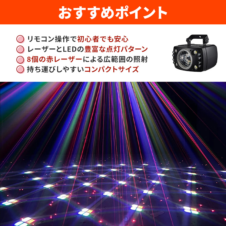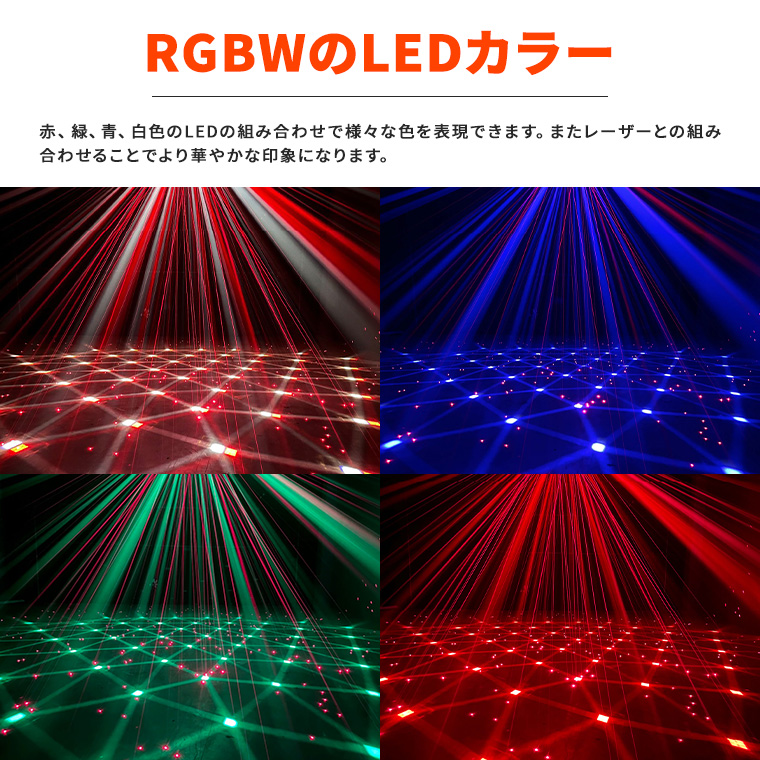 エフェクトライト LED照明 RGBW 赤 青 緑 白 コンセント式 リモコン付属 屋内用 レーザー搭載 間接照明 舞台照明 演出 店内照明 広範囲 クリスマス ハロウイン イベント 結婚式 パーティー ホストクラブ キャバクラ ガールズバー ステージライト スポットライト ミラーボール