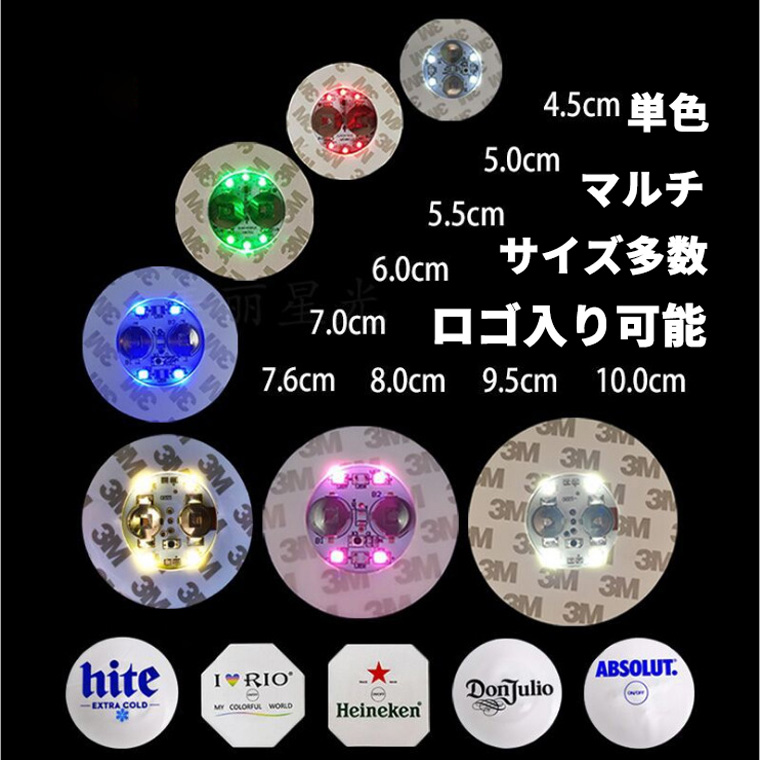 光る ボトル ステッカー ボトル コースター 光るステッカー オーダーメイド専用 台座 丸型 ドーム型 四角形 ライトアップ