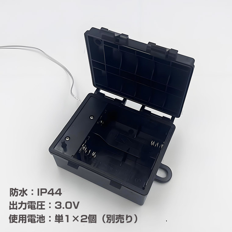 単1電池式 LEDライトコントローラー 防水IP44 8パターン点灯 電池ボックス 3.0V 防水 防雨 型 電池式コントローラー 導線付き 単1×2個 電池ケース バッテリー ケース 電池 ホルダー アダプター