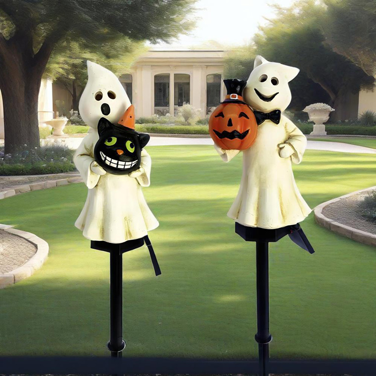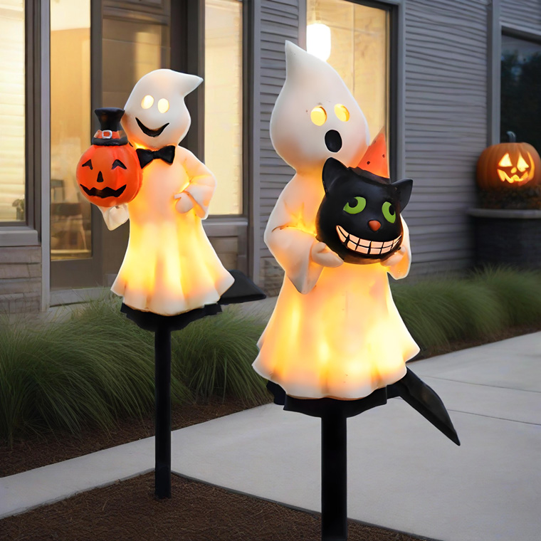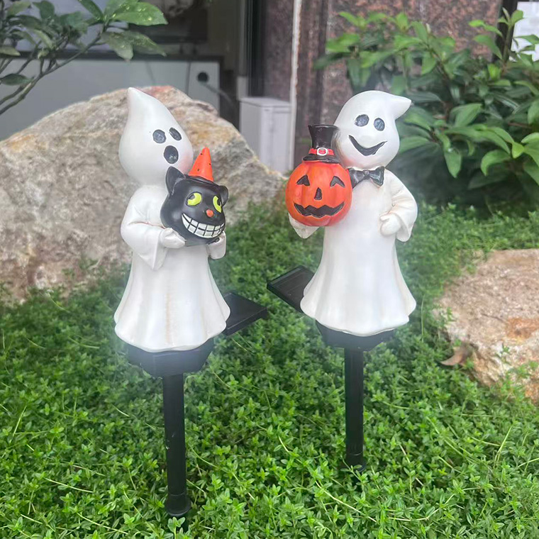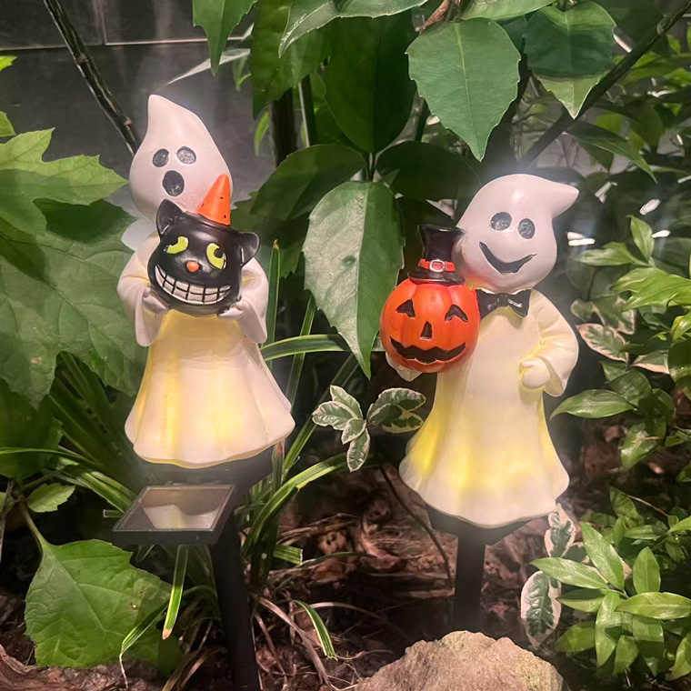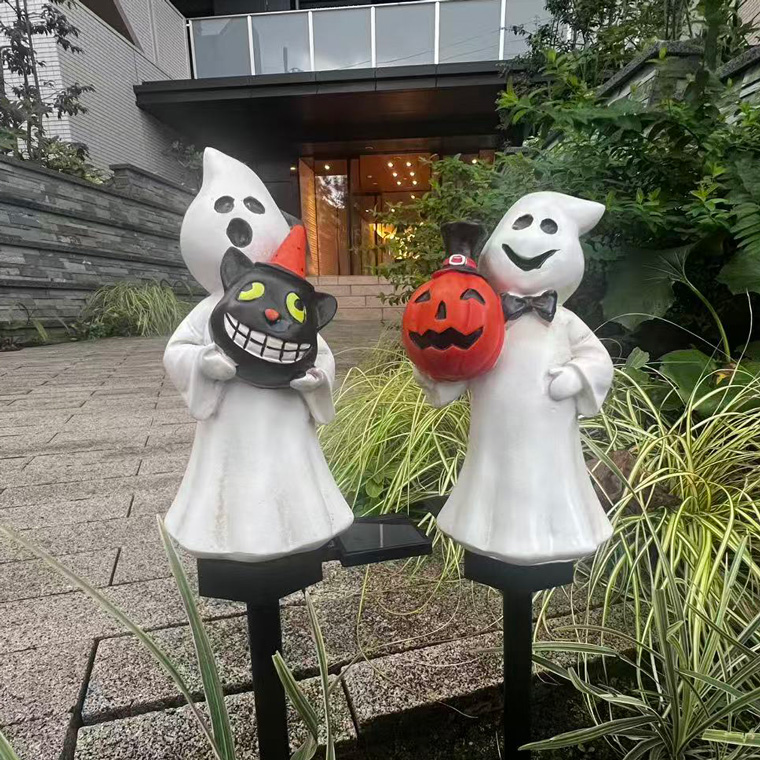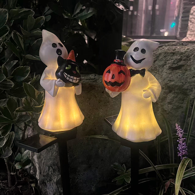 ソーラーライト ハロウィン 電飾 ゴースト 2個セット かぼちゃ 黒猫 お化け 庭飾り 差し込み式 かわいい ガーデン オーナメント オブジェ 置物 イルミネーションライト カボチャ 南瓜 モチーフ 玄関 庭 防水 門灯 外灯 庭園灯 充電式