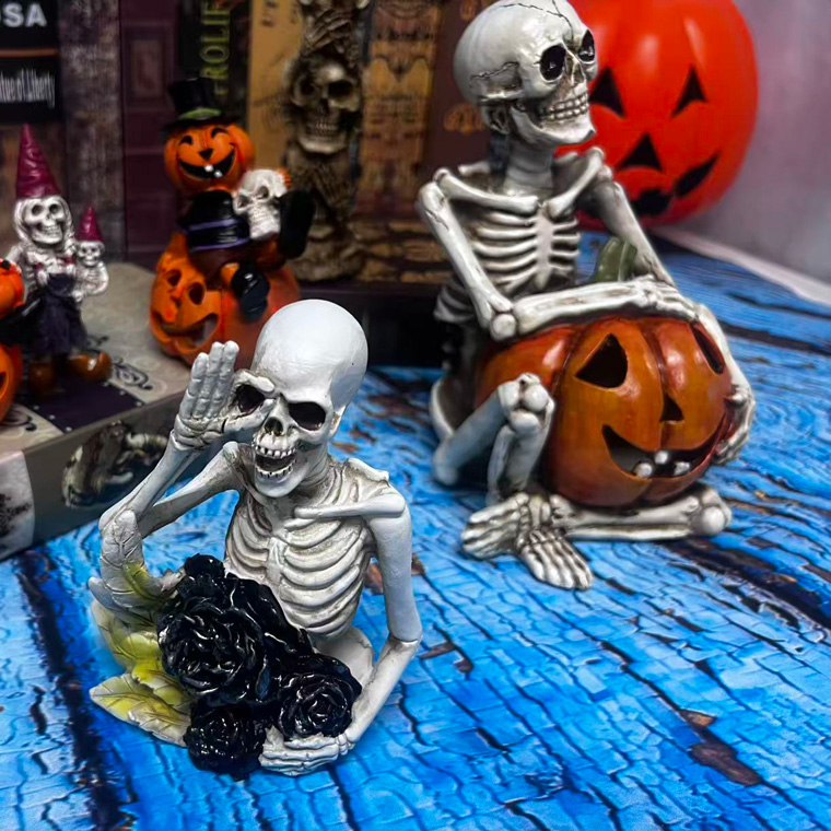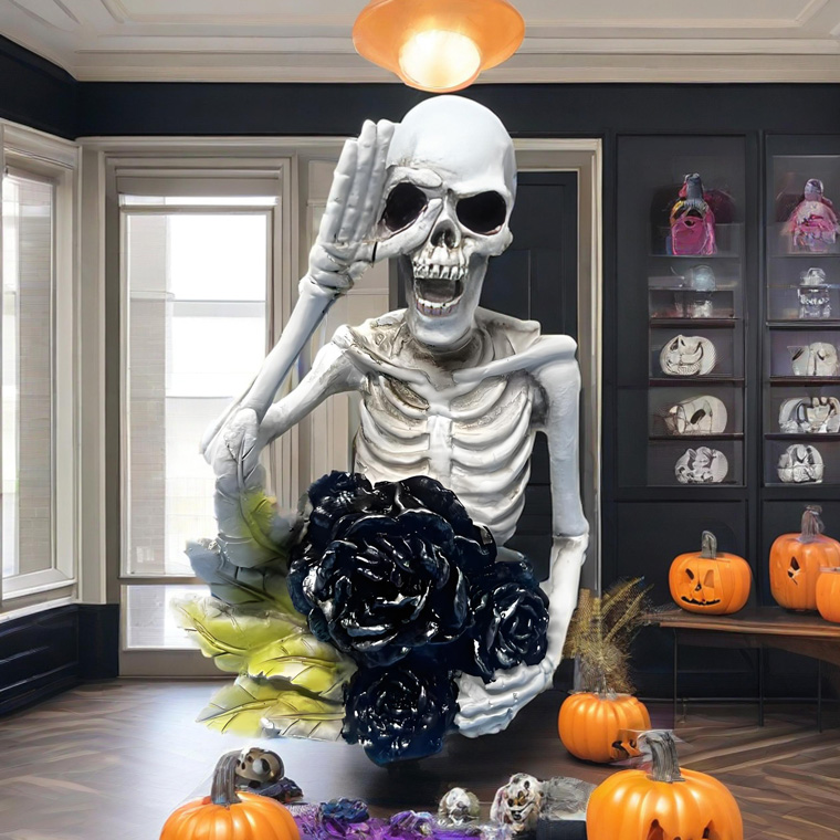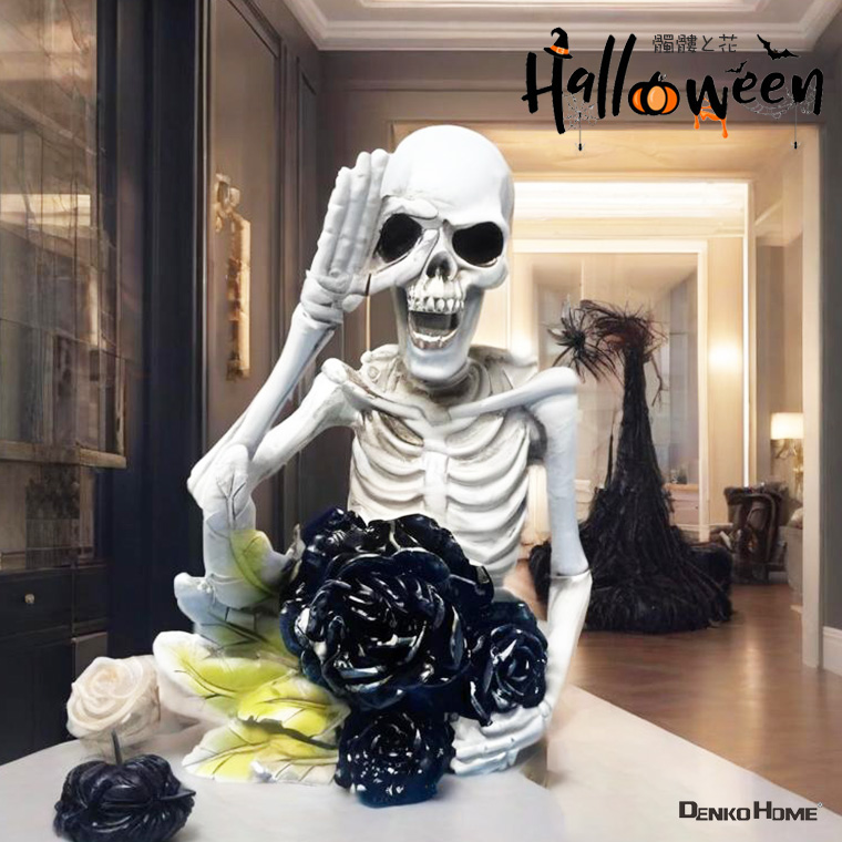 ハロウィン 飾り骸骨 バラ 黒薔薇 ドクロ スカ ハロウィンオブジェ お化け スケルトン ゾンビ デコレーション 髑髏 ゴースト モチーフ 玄関