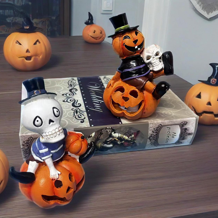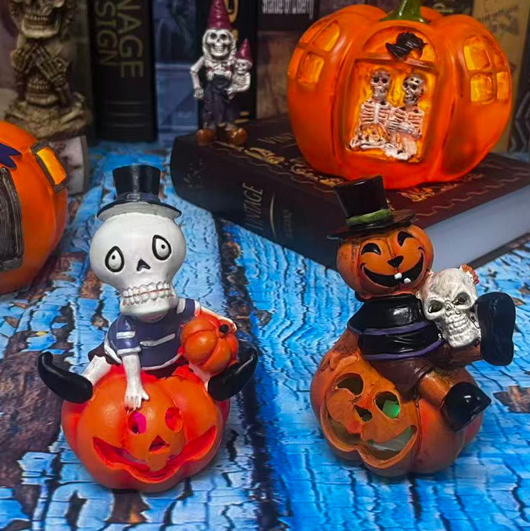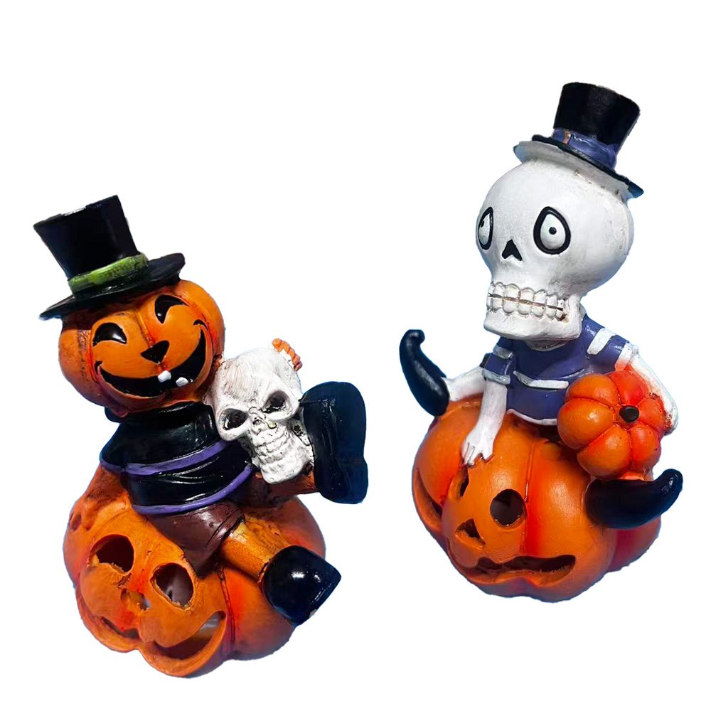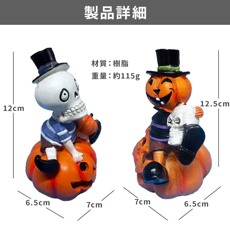 ハロウィン 飾り LED内蔵 カボチャランタン オブジェ 2体セット かぼちゃ お化け 骸骨スケルトン ゾンビ スカル ドクロ ハロウィン オブジェ デコレーション 髑髏 置物 ゴースト 妖精 モチーフ 玄関