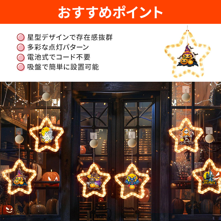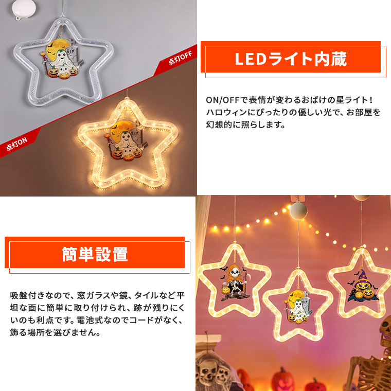 吸盤付き 電池式 星型ハロウィンライトプレート