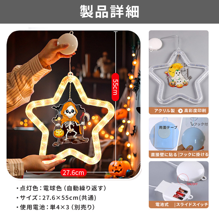 明るく発光する星型のシルエットは、子どもから大人まで楽しめるインテリアに最適。ご家庭の窓辺や玄関先はもちろん、ショップやカフェのディスプレイ、パーティー会場の装飾にもぴったりです。
