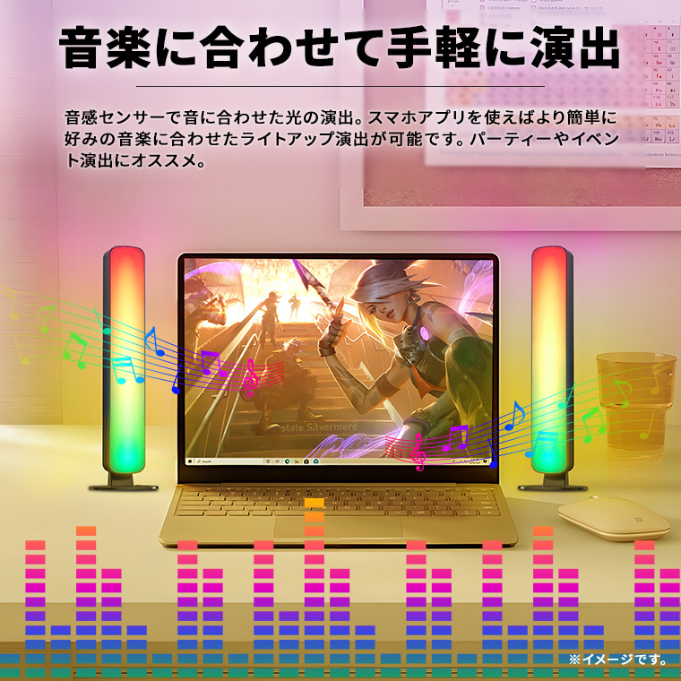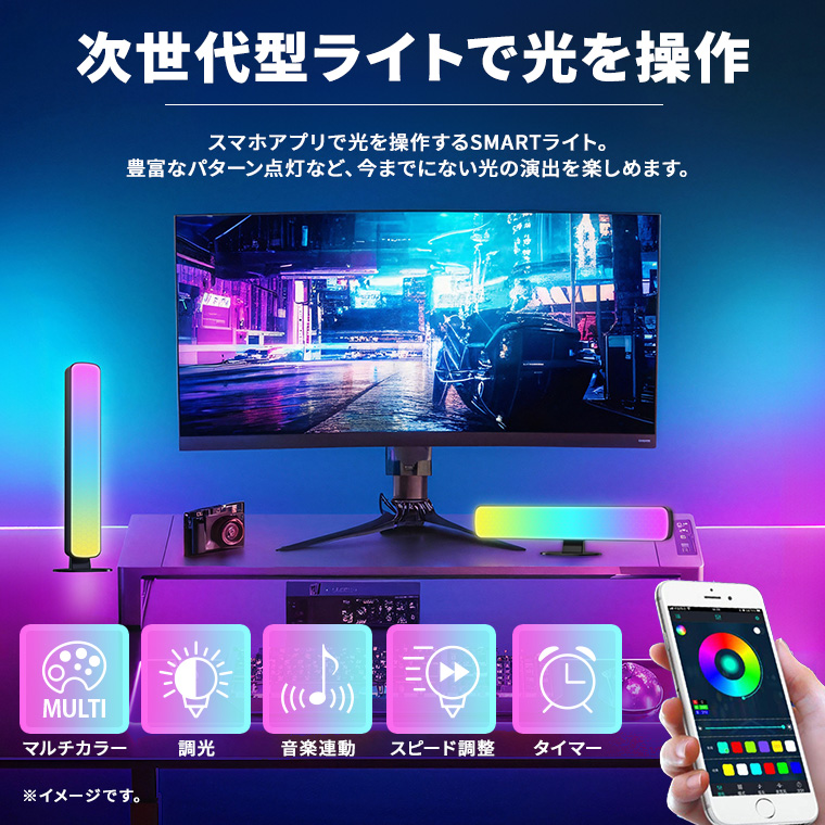 ゲーミングライト LED イルミネーション アプリ操作 RGB USB電源 室内用 調光 調色 タイマー 音楽 同期 おしゃれ 雰囲気ライト ゲーム リズム サウンドセンサー カラフル 間接照明 店舗 演出 雑貨 電光ホーム