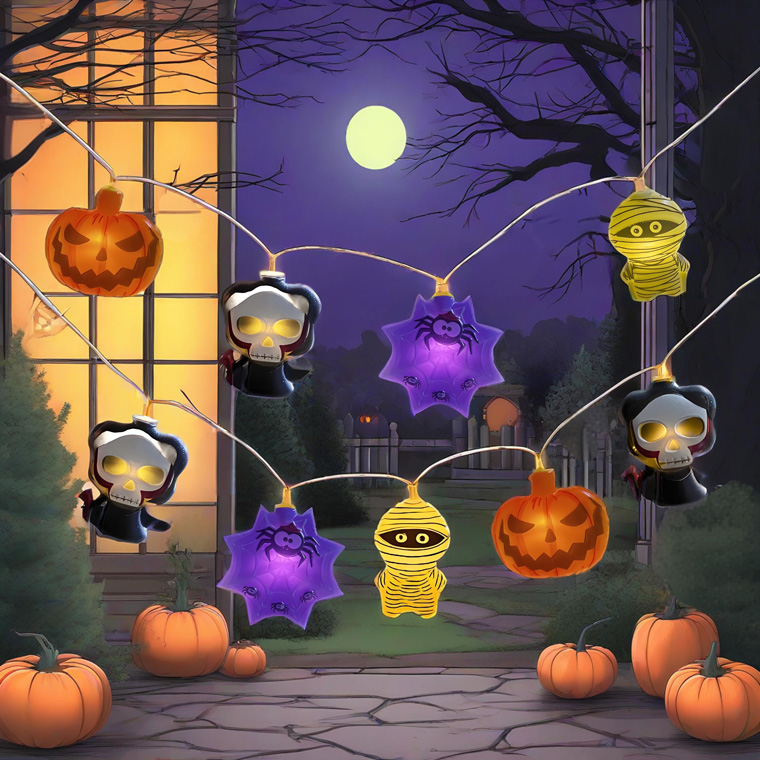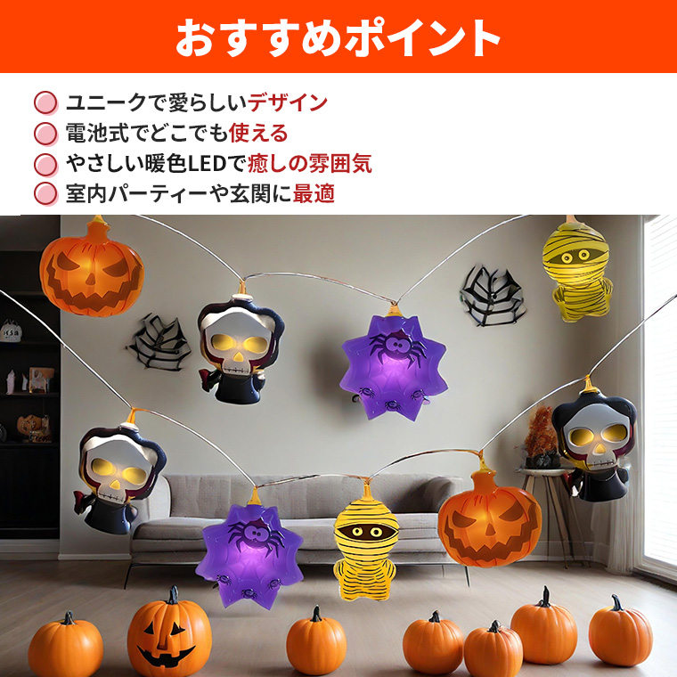 ハロウィン 電飾 飾り 電池式 ハロウィン ガーランドライト LED 3m 20球 室内外装飾 パンプキン ゴースト クモの巣 ミイラ イルミネーション ハロウィン 飾り付け