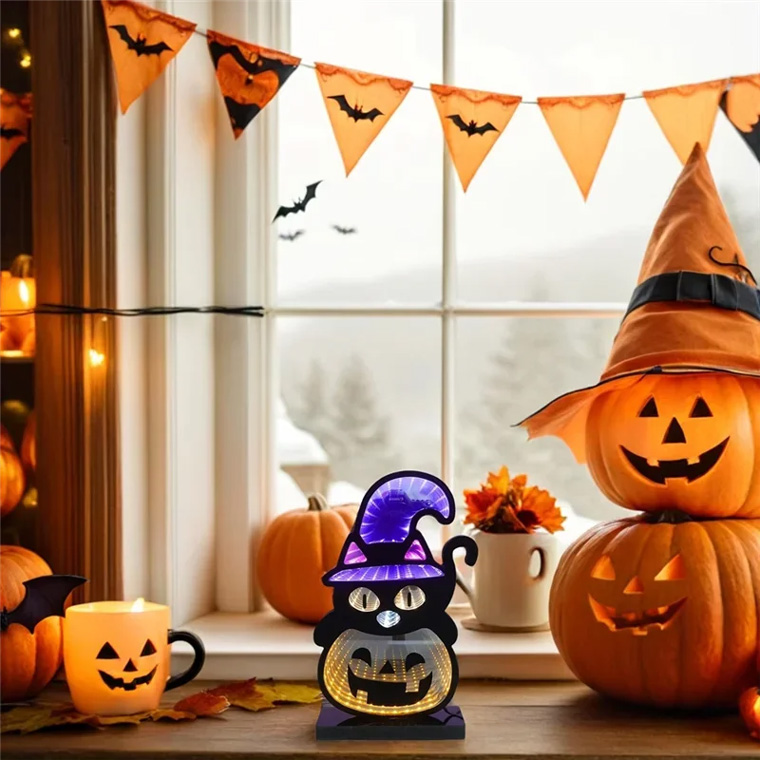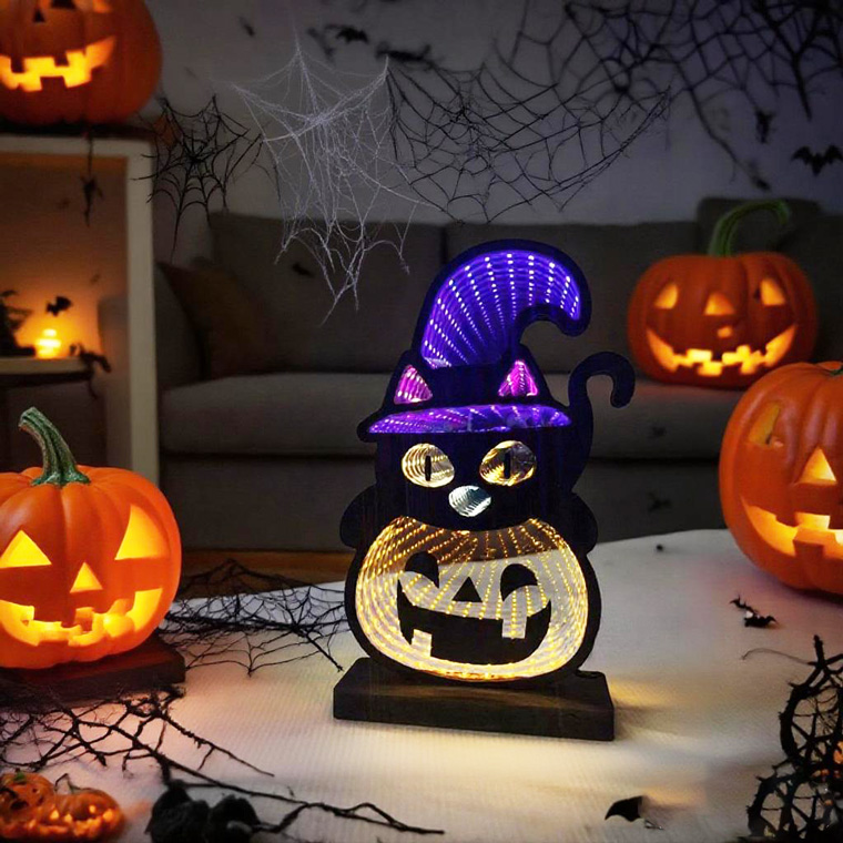 ハロウィン LED 無限 ミラーライト (インフィニティミラーランプ) トンネルランプ ハロウィン ライト ハロウィン飾り 電飾 USB式 星目かぼちゃ インテリア サイン 看板 オブジェ 黒猫 カボチャ パンプキン 魔女