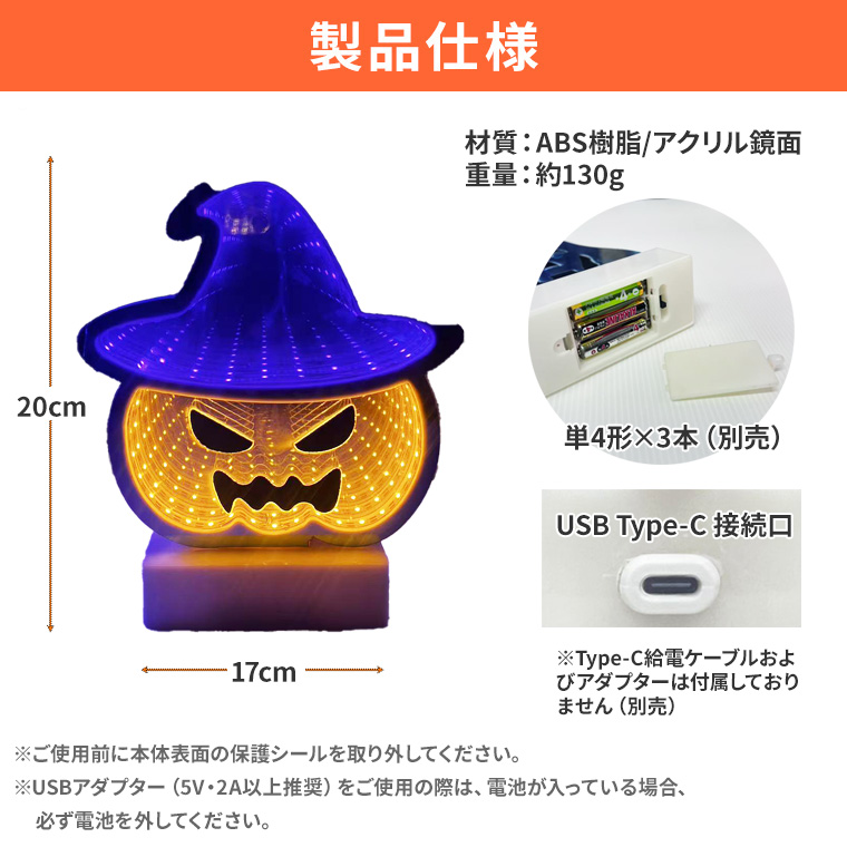 ハロウィン LED 無限 ミラーライト (インフィニティミラーランプ) トンネルランプ 2way給電 ハロウィン ライト ハロウィン飾り 電飾 USB式 電池式 インテリア サイン 看板 オブジェ 黒猫 カボチャ パンプキン 魔女