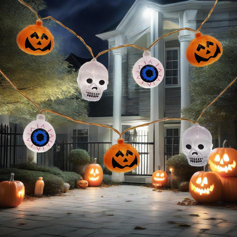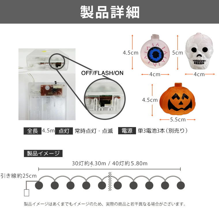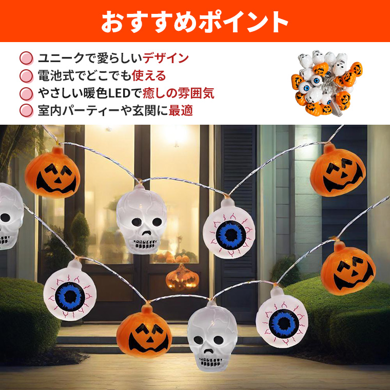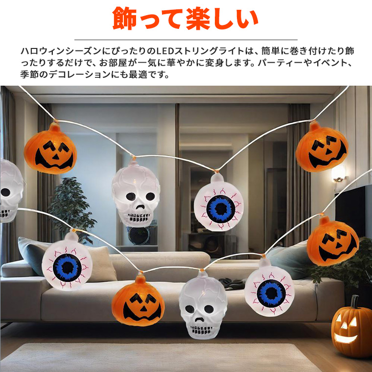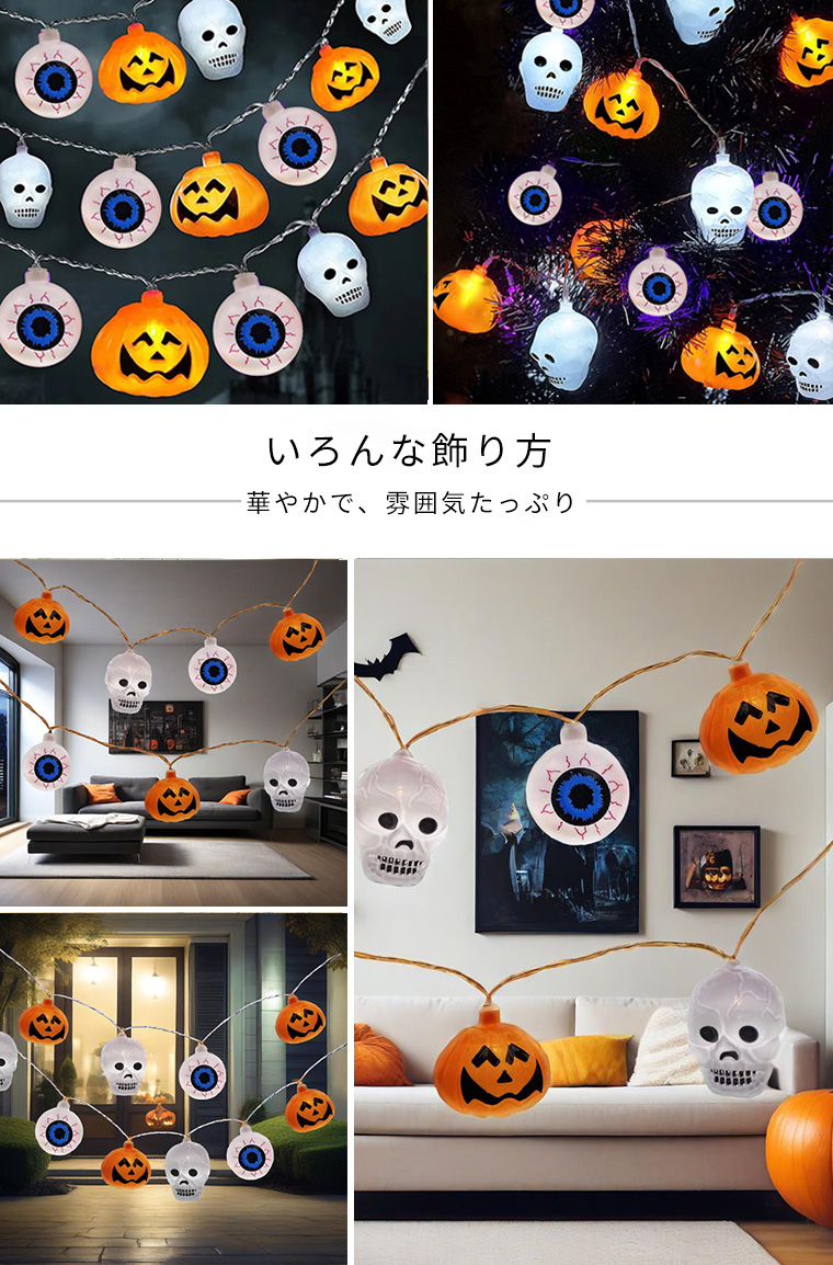 ハロウィン 電飾 飾り 電池式 ハロウィンライト 30灯/40灯 2サイズ 室内外装飾 ガーランドライト パンプキン カボチャ スカル 目玉 イルミネーション ハロウィン 飾り付け