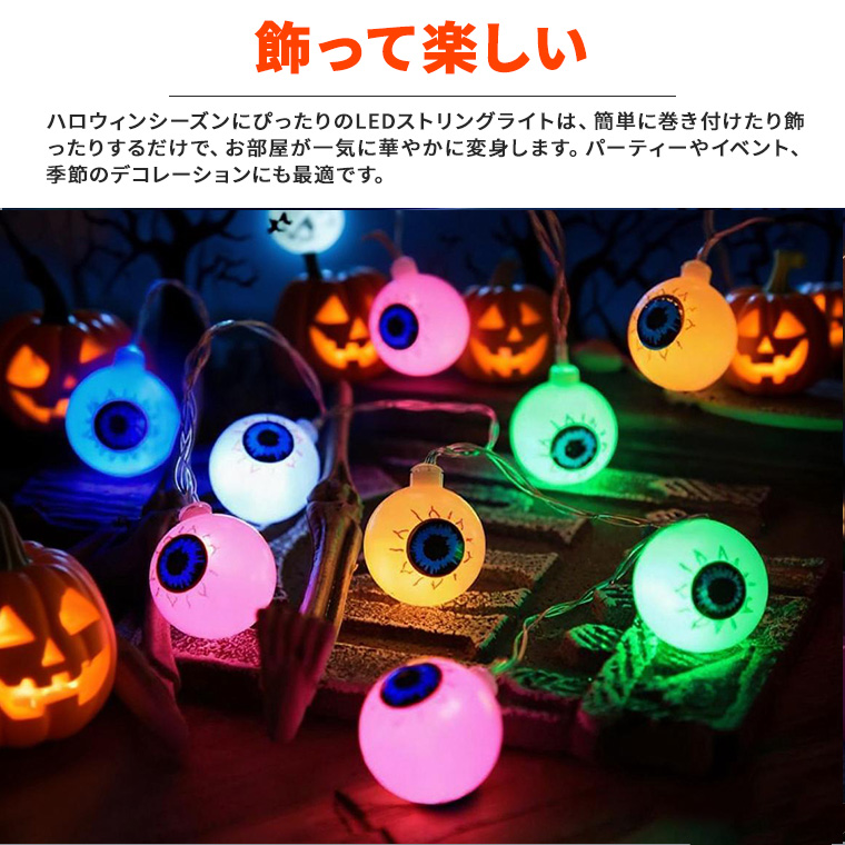 ハロウィン 電飾 飾り 電池式 ハロウィン 目玉 ライト ガーランドライト LED 3m 20球 室内外装飾 パンプキン ゴースト クモの巣 ミイラ イルミネーション ハロウィン 飾り付け
