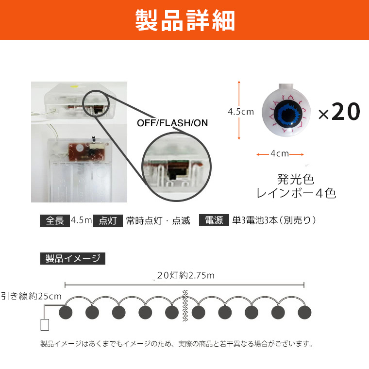 品名 | ハロウィンガーランドライト目玉(den-il-32) |