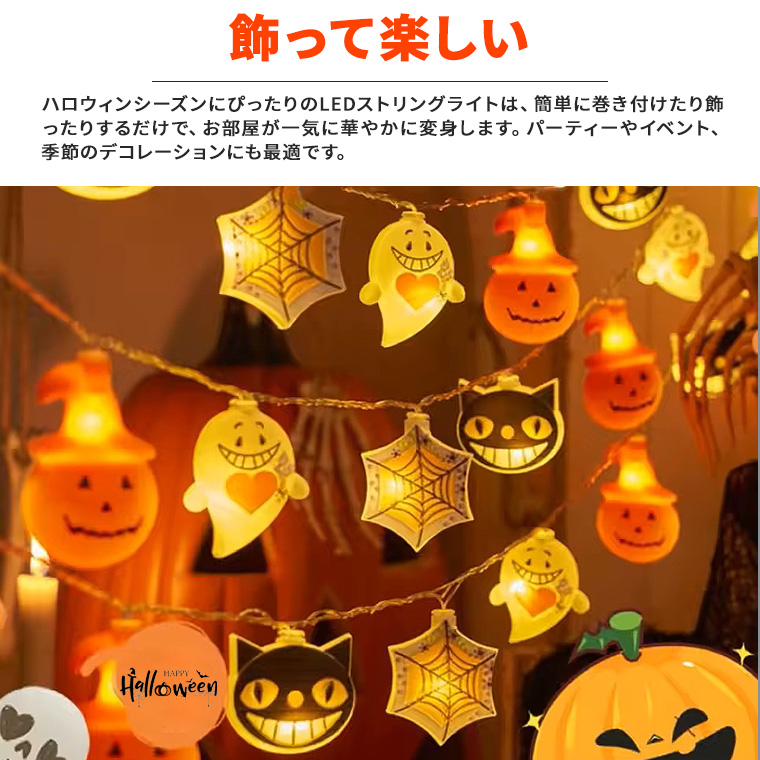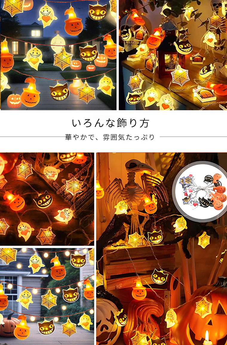 お子様とのハロウィンパーティーはもちろん、ショップのディスプレイやイベント装飾にもぴったり。取り付け簡単で、夜は幻想的な雰囲気を楽しめます。