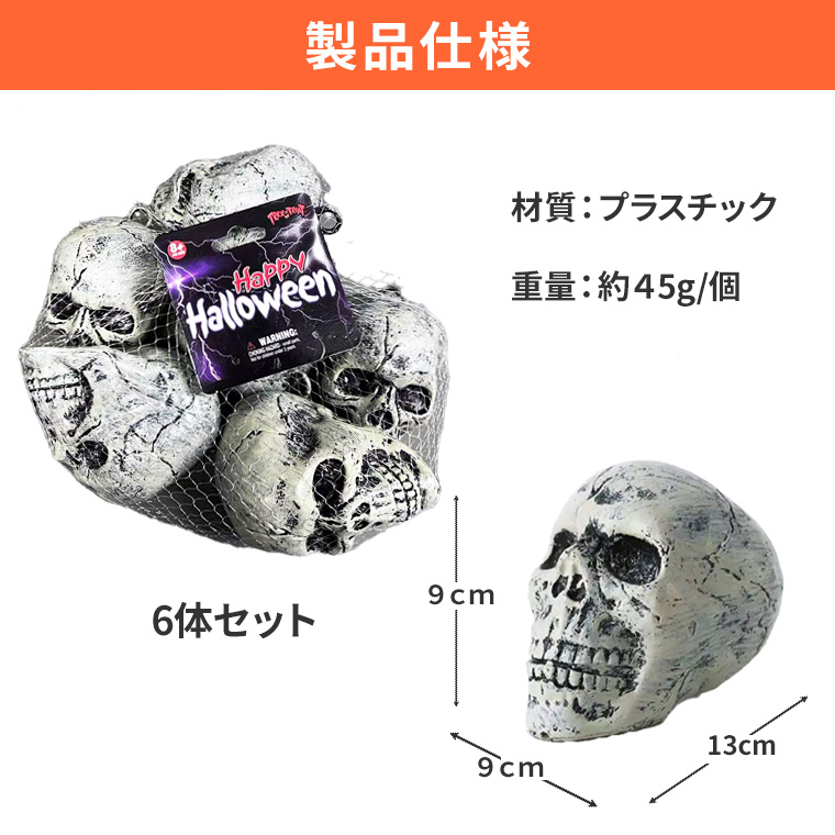 ハロウィン スカル 6体セット ハロウィン 飾り 骸骨 ドクロ 装飾 インテリア ディスプレイ 置き型 吊り下げ ハロウィンオブジェ お化け スケルトン 髑髏 デコレーション 置物 モチーフ 玄関